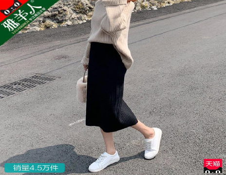 4、卫衣+针织半身裙+休闲鞋