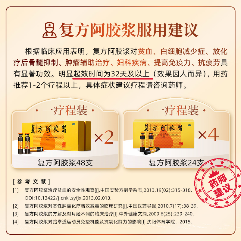 【东阿阿胶】复方阿胶浆20ml*48支/盒专治贫血、食欲不振、失眠、头晕目眩