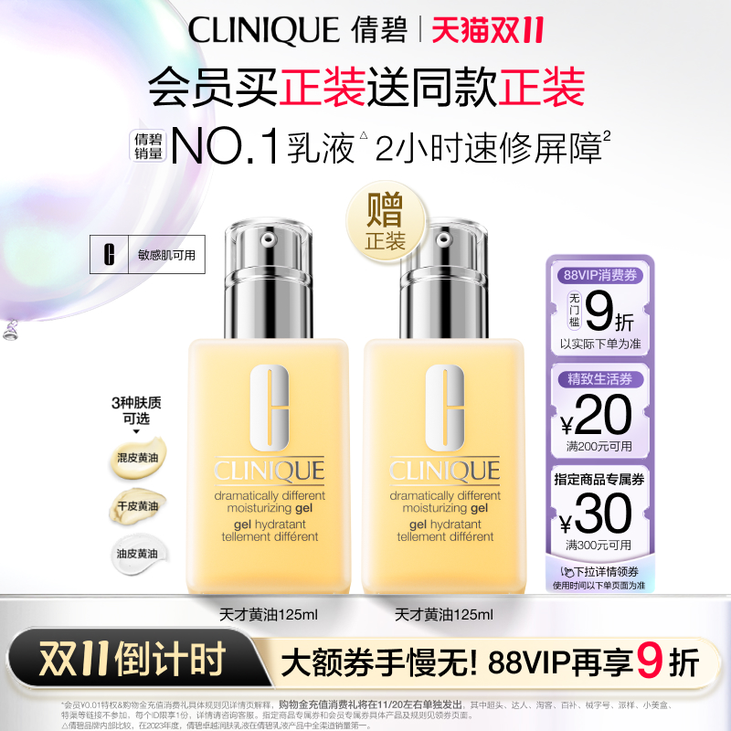 【淘金币抵扣15.01元+37.2元天降淘礼金+1000-140美妆券+88VIP9折消费券,到手仅135左右】【会员赠正装天才黄油125ml,到手共250ml】Clinique倩碧官方旗舰店天才黄油保湿乳液125ml+赠125ml