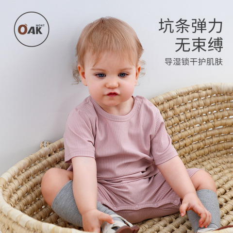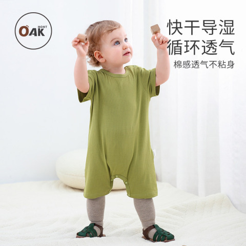 Oakmont婴儿衣服夏季,连体衣短袖新生儿宝宝哈衣爬服速干导湿睡衣