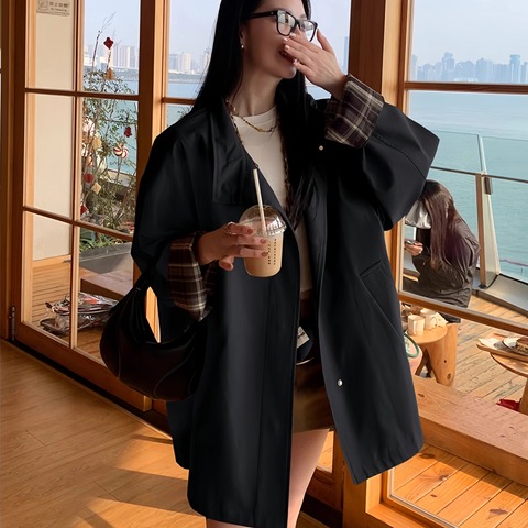 99¥ CZ005 oloPfRcBxKE¥ https://m.tb.cn/h.SIMlzRZ BY格拼接长款韩风风衣外套2025新款秋冬撞色高级感英伦风大衣