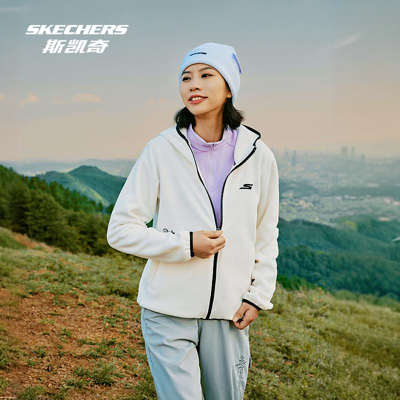 斯凯奇官方outlets摇粒绒外套女年秋冬新款舒适连帽外套保暖锁温