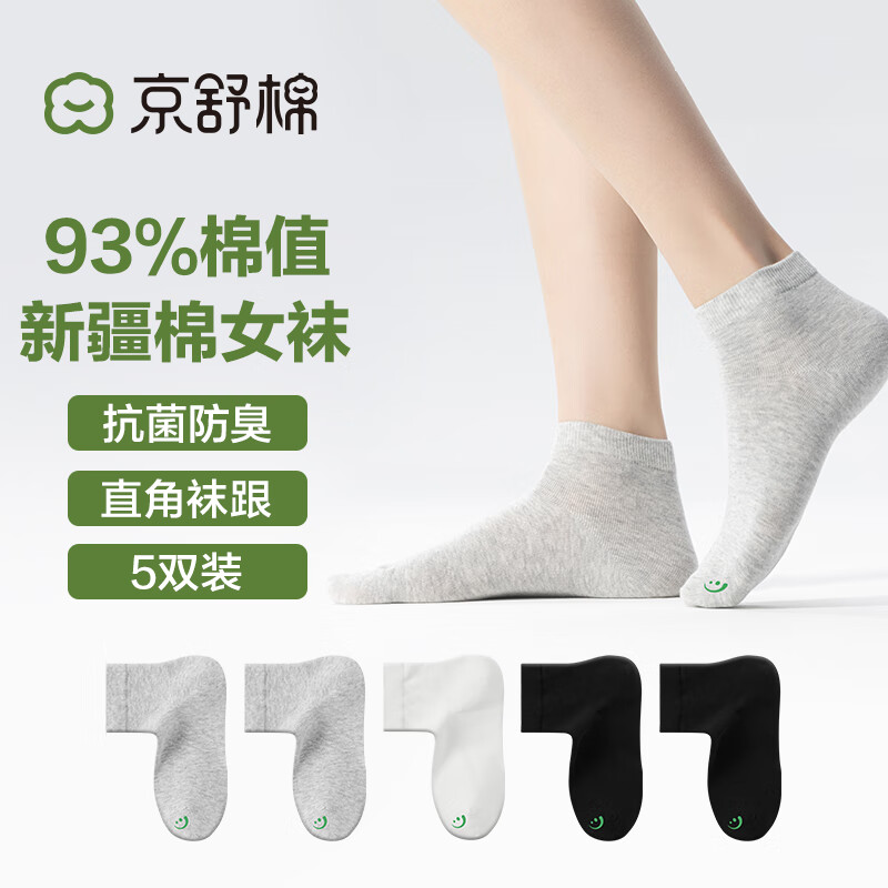 京舒棉自有品牌棉·女士直角7A级抗菌防臭高棉休闲软棉棉短袜