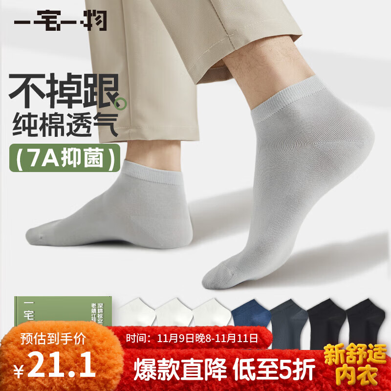 一宅一物春夏袜子男7A抗菌袜子100%纯棉袜消臭短袜中筒袜黑色百搭新疆棉