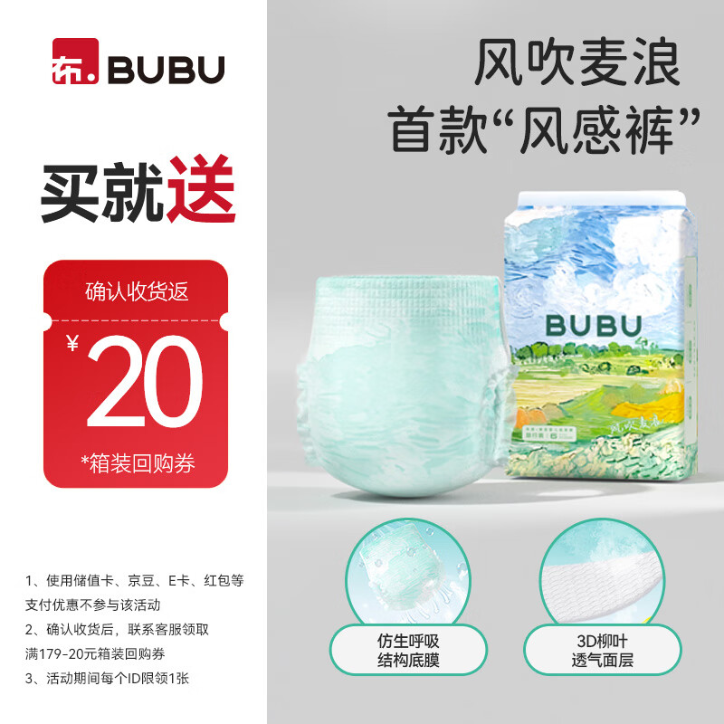 BUBU风吹麦浪纸尿裤L码6片 超薄透气风感裤