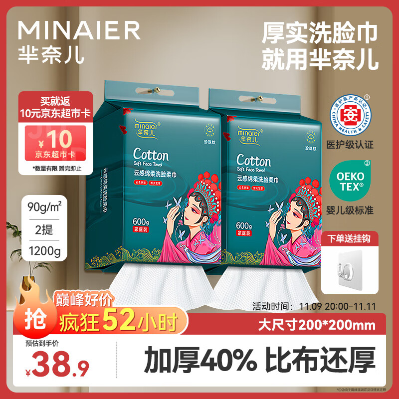 芈奈儿一次性洗脸巾毛巾干湿两用擦脸绵柔巾洁面巾悬挂式加厚160抽*2提