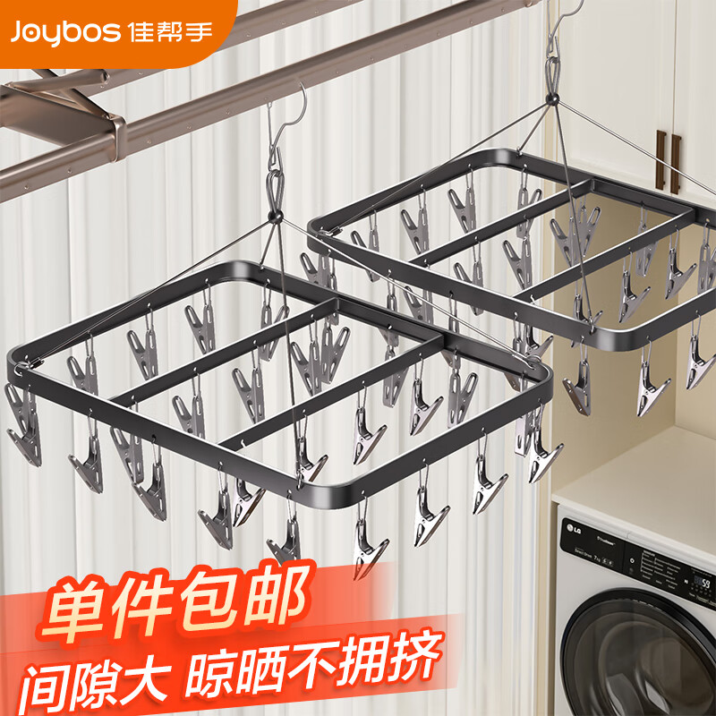 佳帮手晾衣架多夹子晒袜子神器铝合金晾晒架阳台家用多功能晒内衣夹26夹
