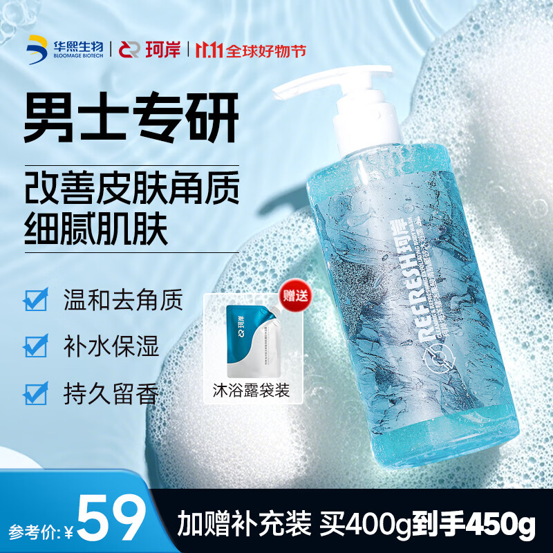 珂岸果酸磨砂沐浴露男士专用浴液控油保湿去角质不假滑持久留香400g