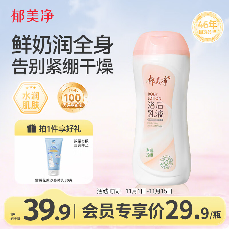 郁美净成人浴后乳液220g保湿滋润改善干燥水润身体乳
