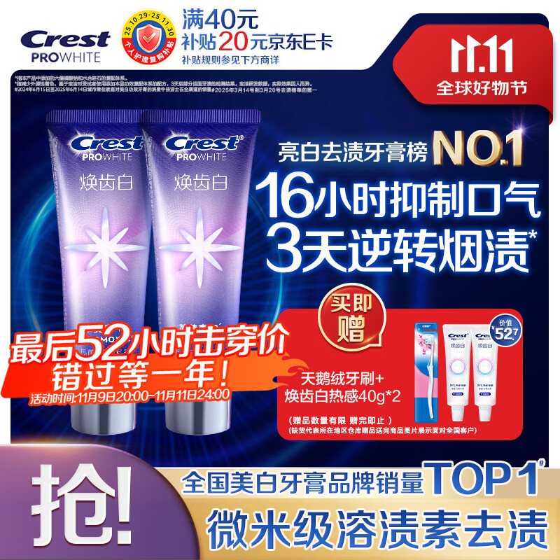 佳洁士焕齿白溶渍美白牙膏去牙渍去烟渍2支共180g热门商品京东自营