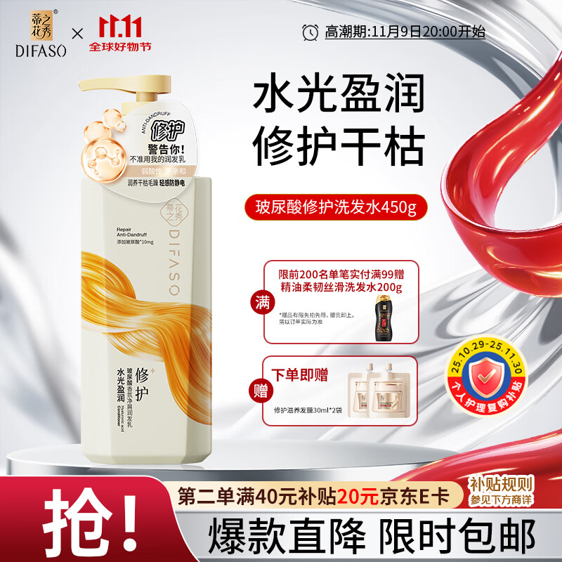 蒂花之秀 DIFASO护发素玻尿酸香氛净屑润发乳450g 滋养强韧水润柔顺修护洗头膏