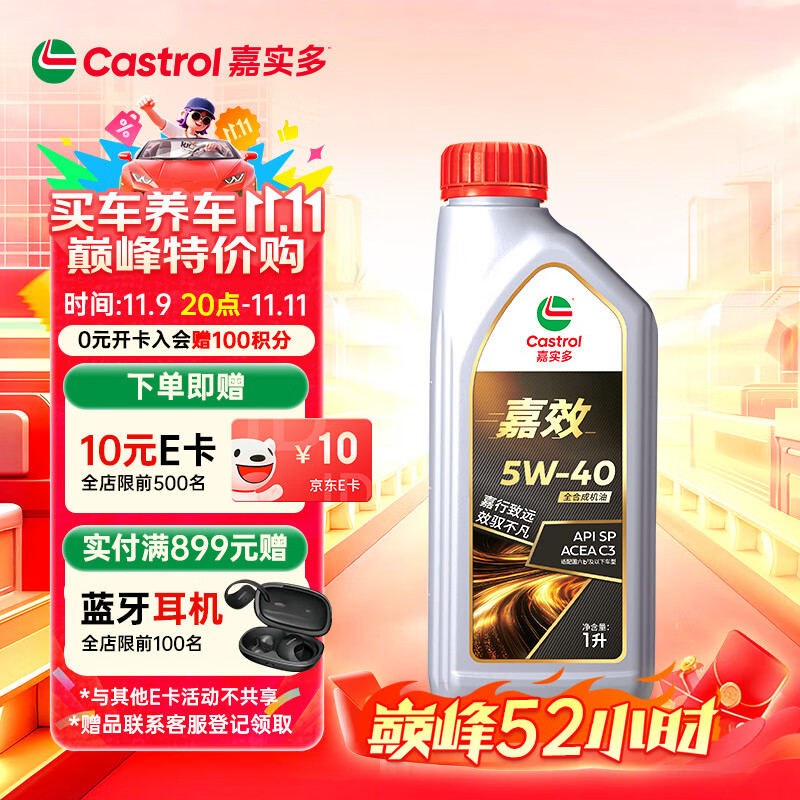 嘉实多(Castrol)嘉效 全合成机油 润滑油 5W-40 SP/C3 1L 汽车保养