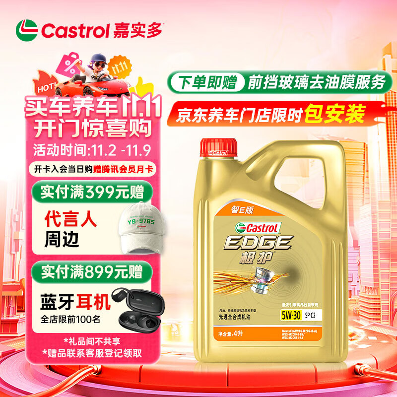 嘉实多(Castrol)极护智E版 全合成机油 汽机油润滑油 5W-30 SP/C2 4L 汽车保养