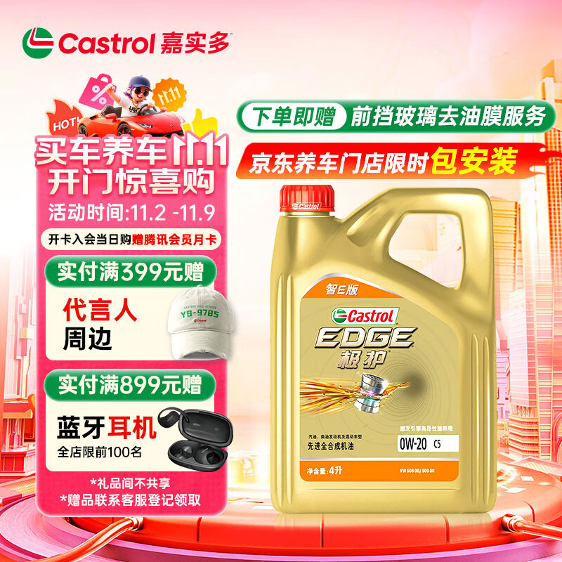 嘉实多(Castrol)极护智E版 全合成机油 润滑油 0W-20 C5 4L 汽车保养