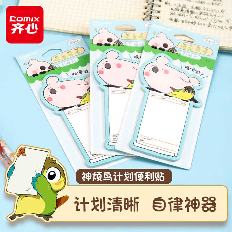 齐心(COMIX)神烦鸟计划便利贴自律打卡表30张日程贴 可粘便签纸易事贴 笔记贴错题本单词本便签本 YFCD0155