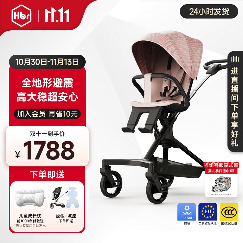 虎贝尔稳稳车遛娃神器可折叠双向高景观可坐可躺婴儿推车溜娃 稳稳车 - 云镜粉