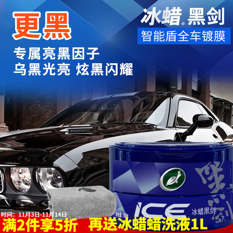 龟牌(Turtle Wax)冰蜡黑剑汽车蜡黑色车固体镀膜剂打蜡养护蜡增亮保护白车蜡全车用 【黑车专用】冰蜡黑剑+擦巾