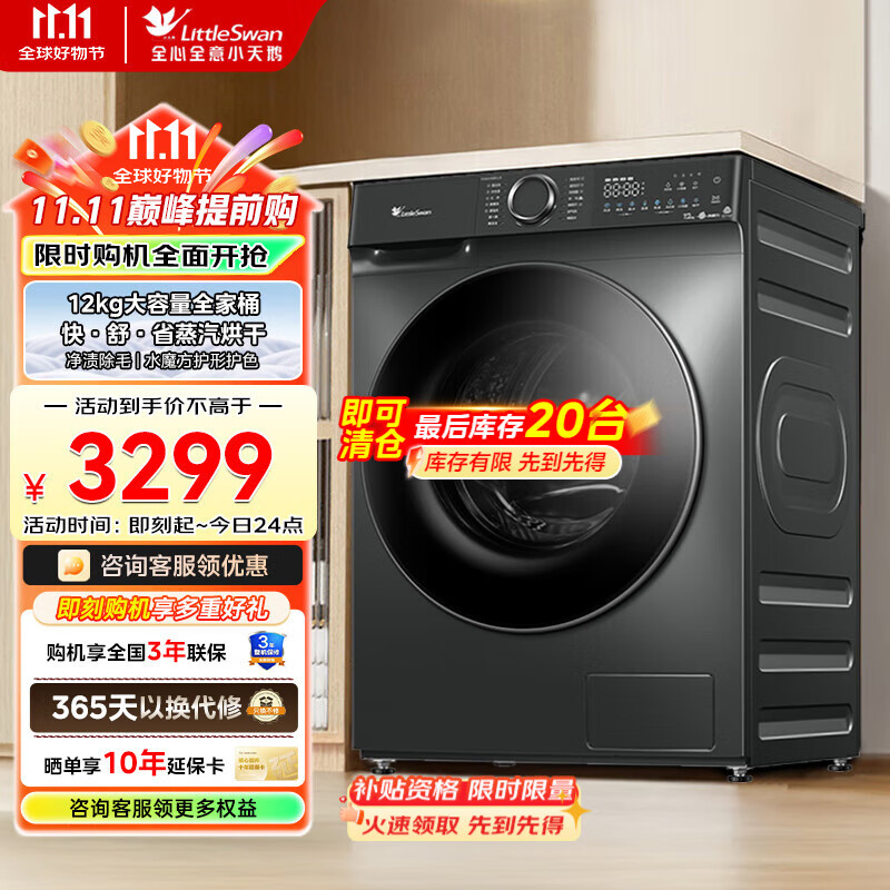 小天鹅(LittleSwan)12公斤大容量全自动滚筒洗衣机水魔方护色护形 除菌1.1洗净比 一级能效 以旧换新 【12公斤 洗烘一体】TD120V618PLUS