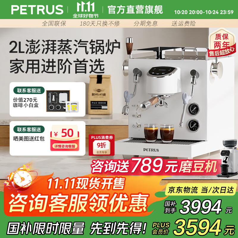 柏翠咖啡机家用商用半自动专业意式浓缩蒸汽打奶泡 高开放参数 PE3922 节日送礼 白色( 下单前咨询送惊喜赠品 )