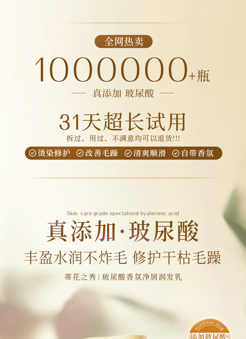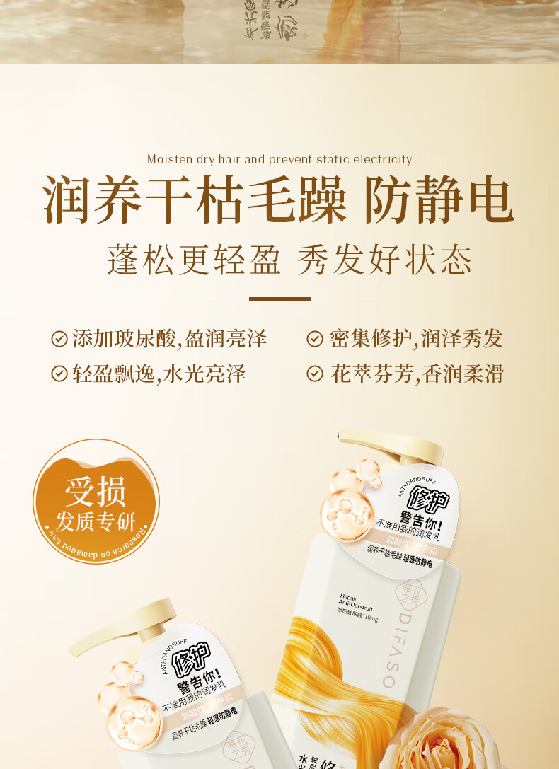 蒂花之秀 DIFASO护发素玻尿酸香氛净屑润发乳450g 滋养强韧水润柔顺修护洗头膏
