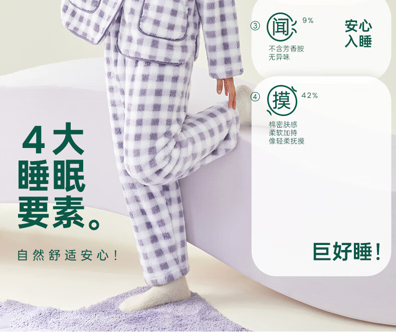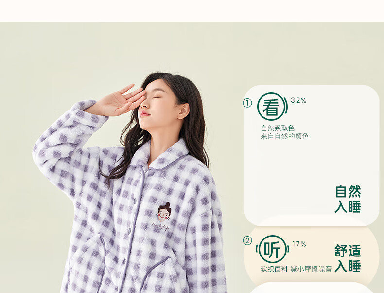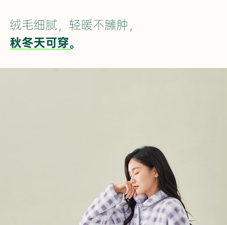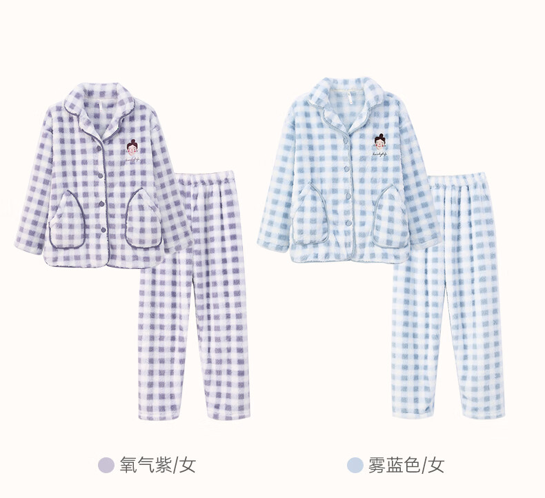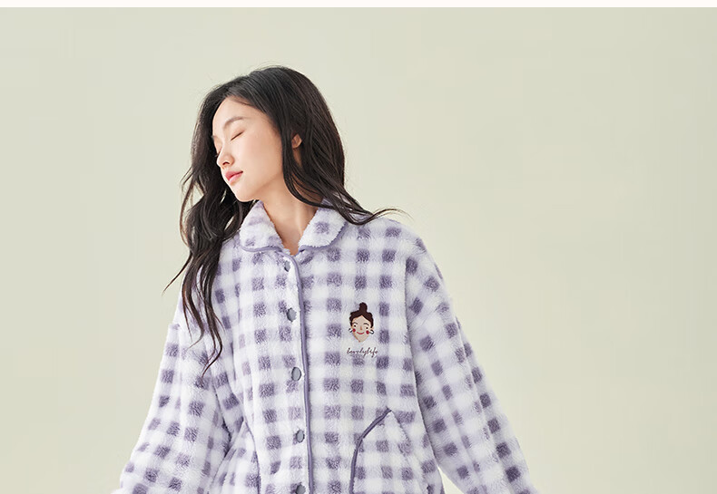 安之伴【陪宠抗静电】睡衣女秋冬雪花绒保暖休闲宽松女士家居服可外穿 氧气紫 L
