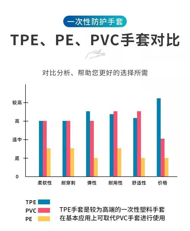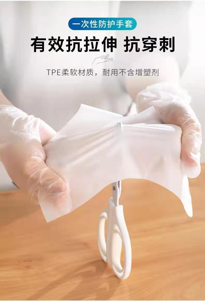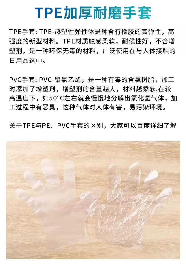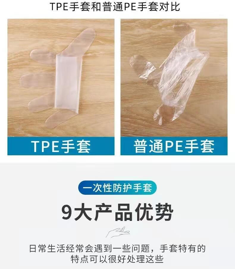 一次性手套食品级防护透明加厚TPE手套一次性tpe手套薄膜手套批发 白色盒装3盒 M码