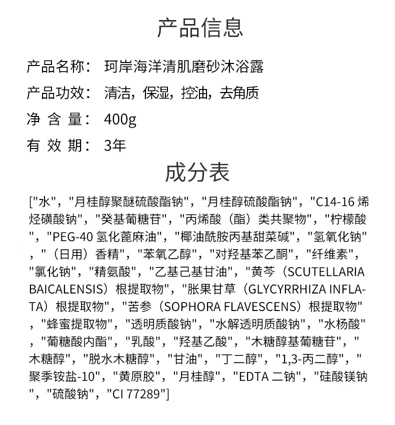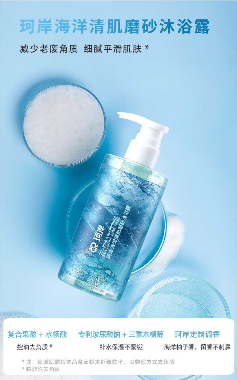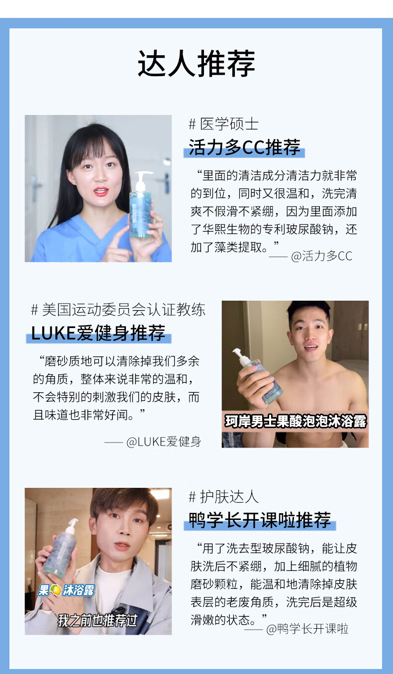 珂岸果酸磨砂沐浴露男士专用浴液控油保湿去角质不假滑持久留香400g