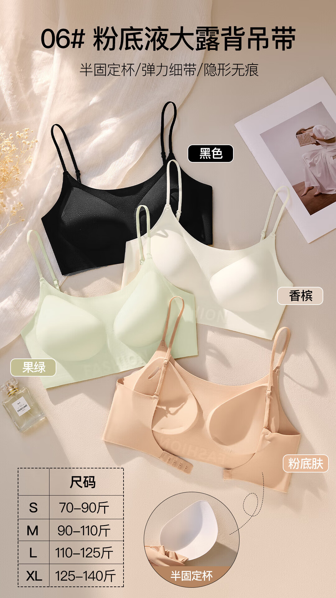 雅鹿内衣女粉底液无痕隐形美背吊带一体式U领防走光抹胸文胸白T恤神器 隐形肤+黑色 M (90-110斤)