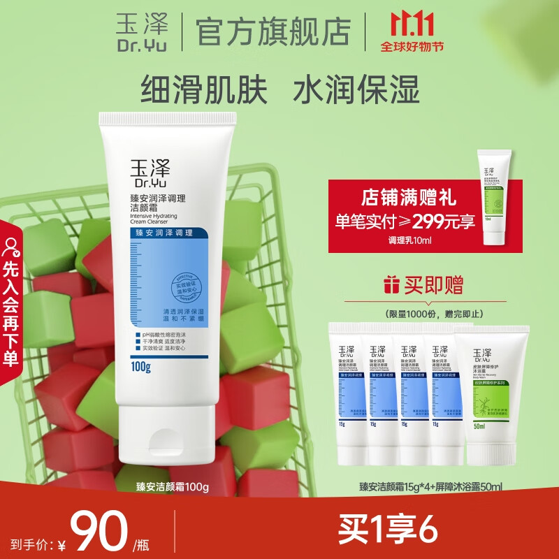 玉泽(Dr.Yu)洗面奶 臻安润泽调理洁颜霜 玻尿酸弱酸温和深层清洁 100g