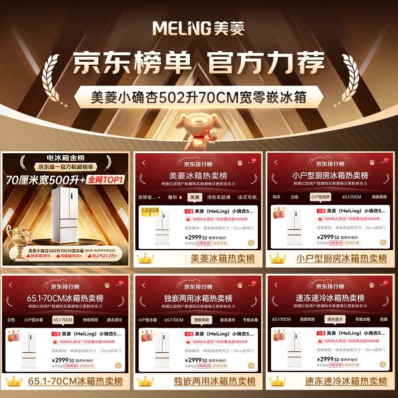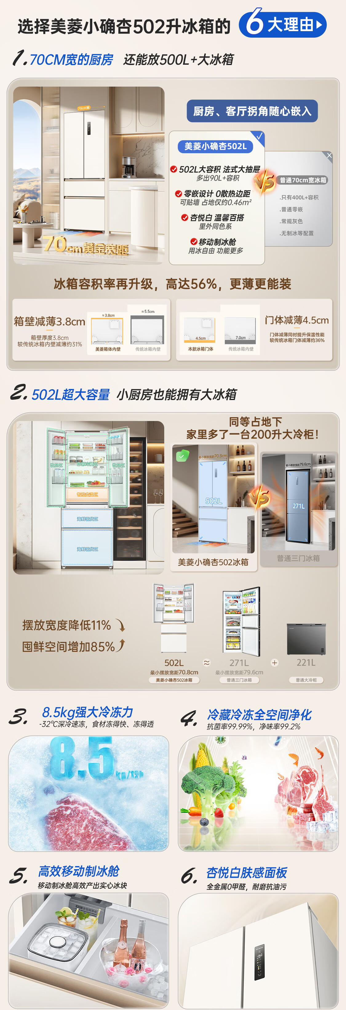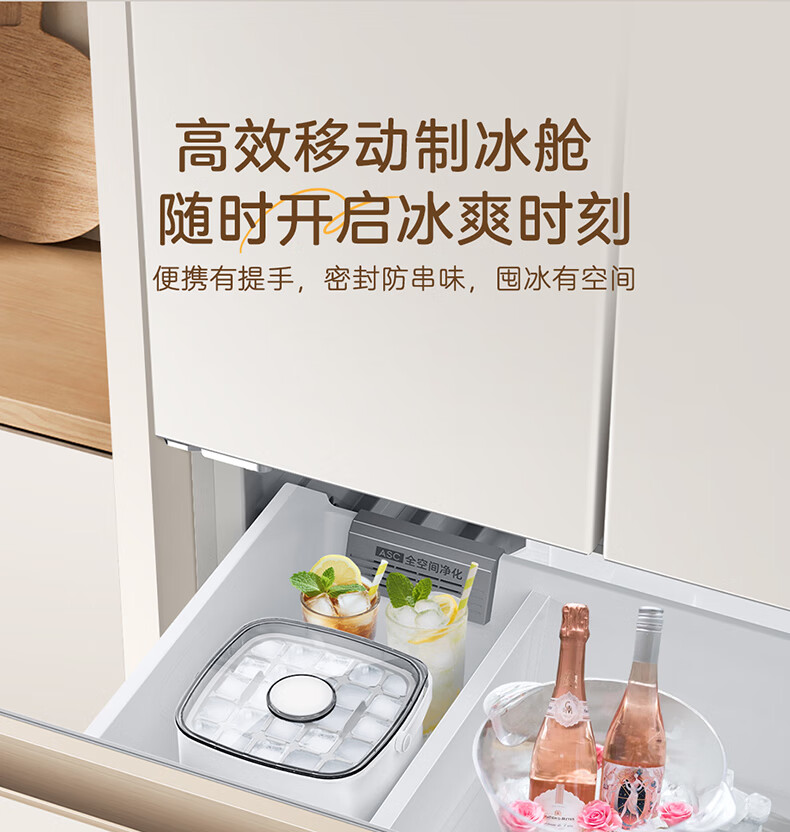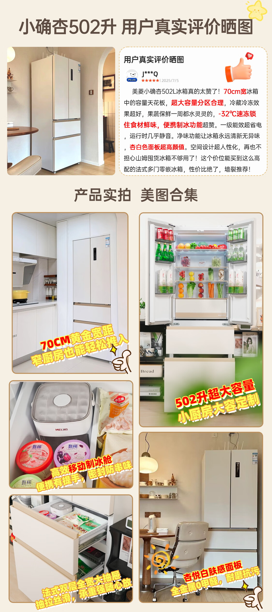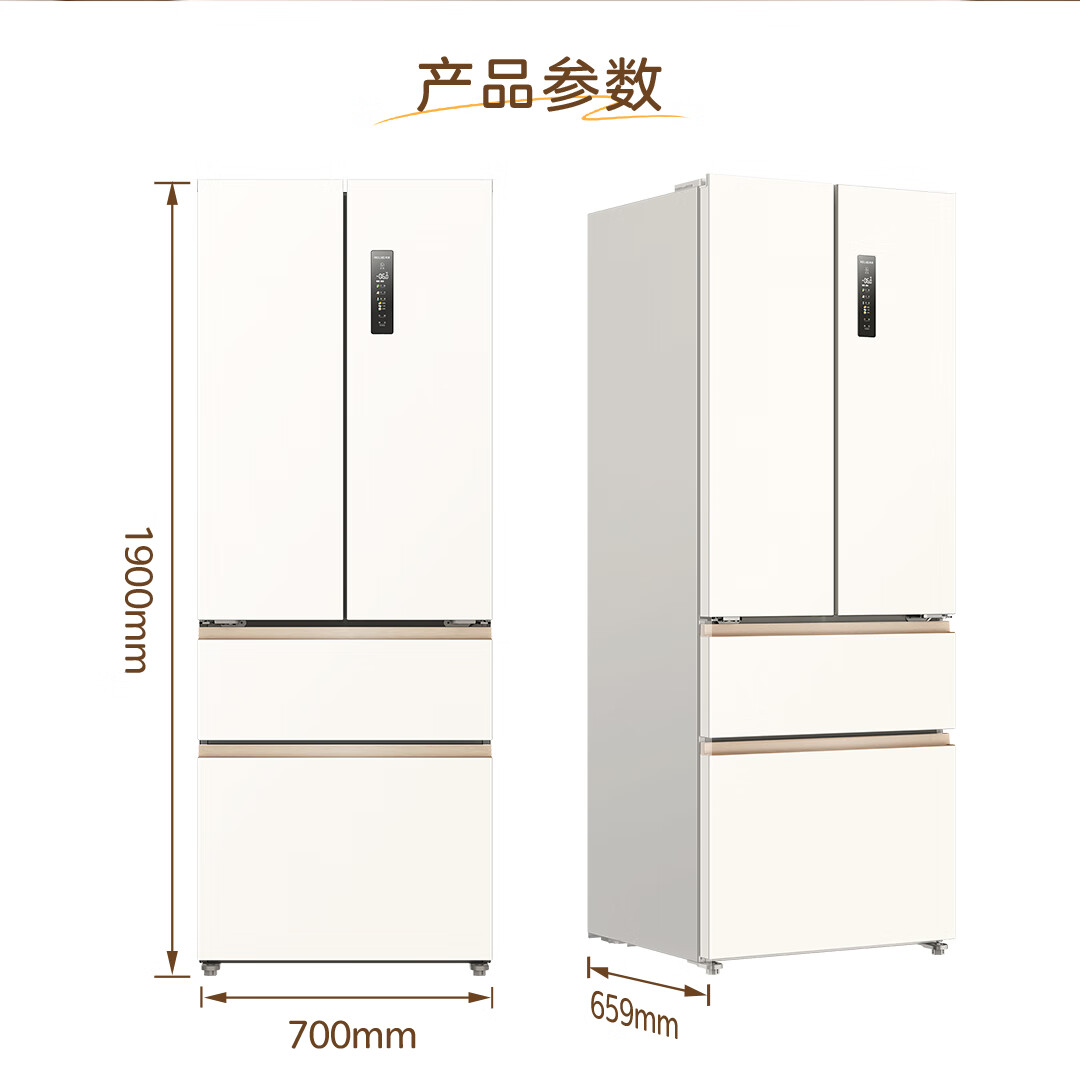 美菱(MeiLing)小确杏502升法式四开门冰箱70cm宽制冰超薄嵌入大容量变频底部散热国家补贴BCD-502WFP9CZX杏悦白