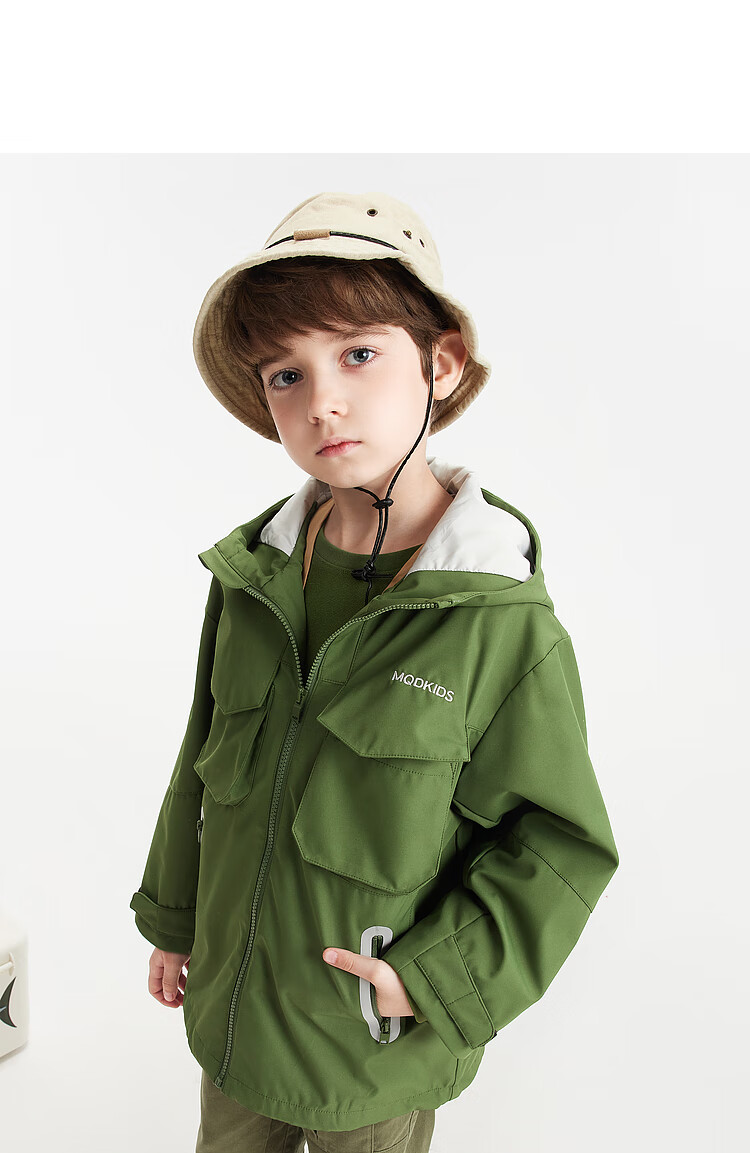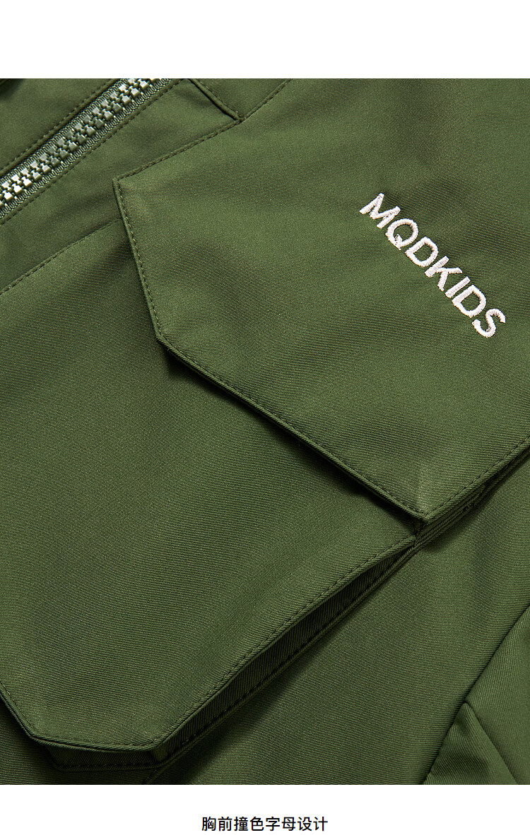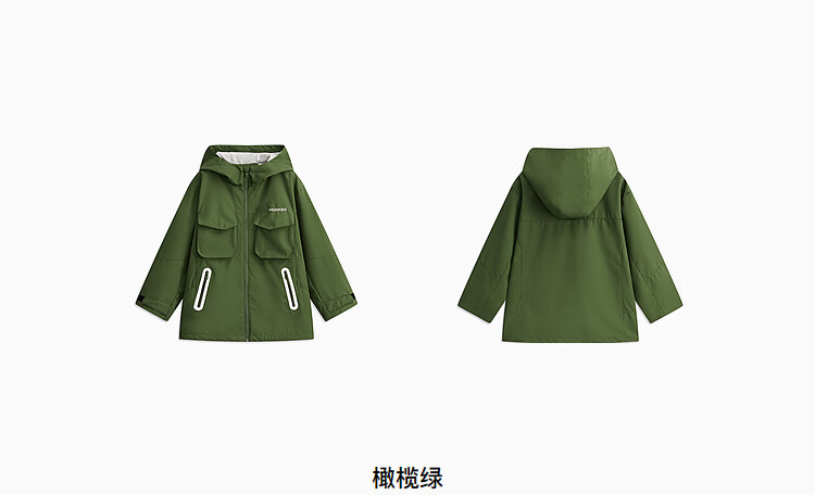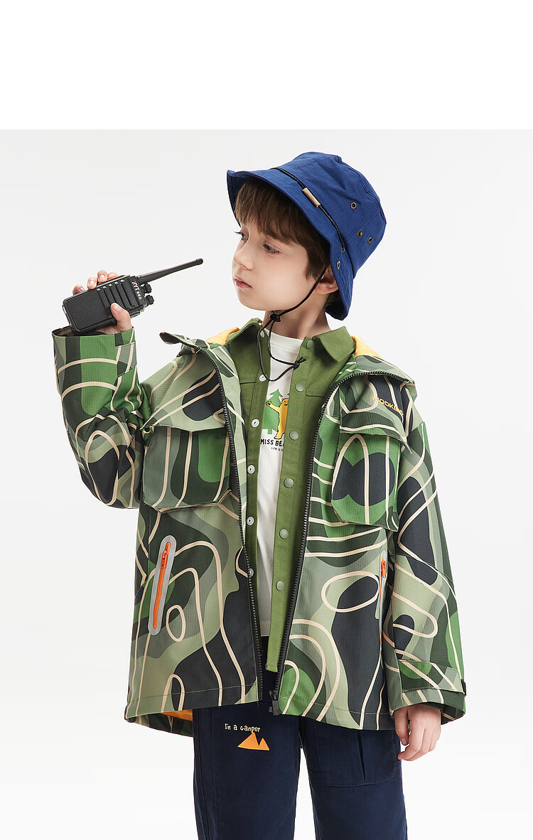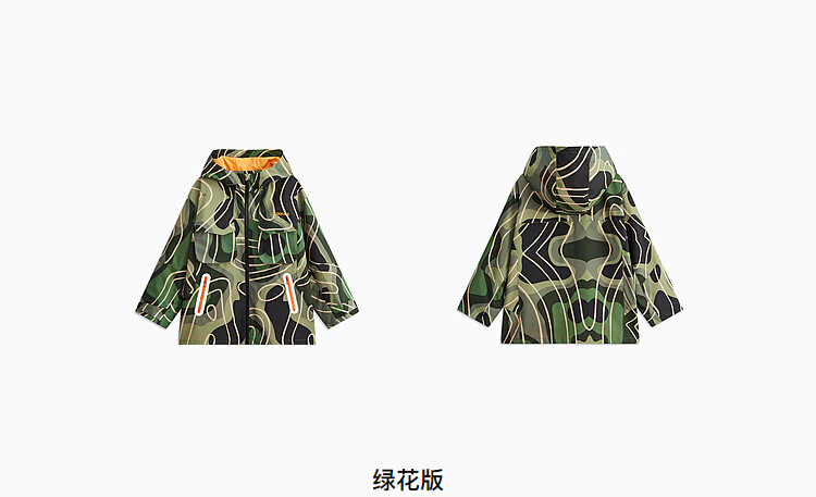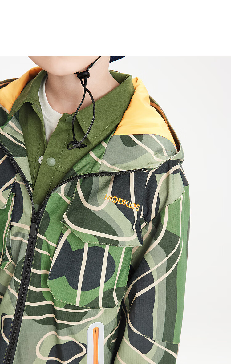 MQD童装男童中长款印花连帽风衣23字母时尚防水反光口袋上衣 绿花版 170 (3XL)