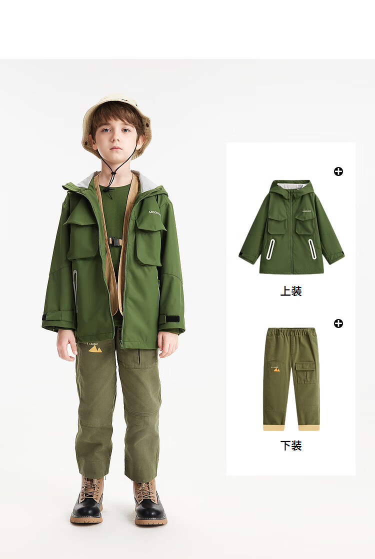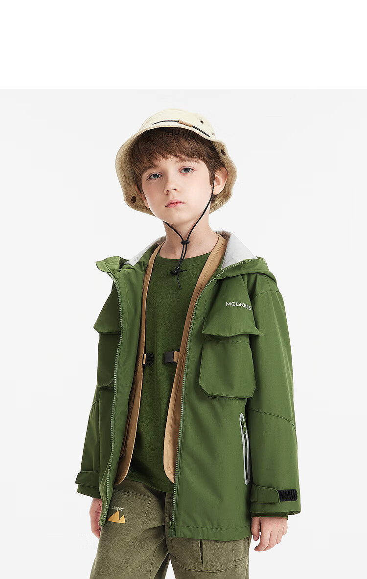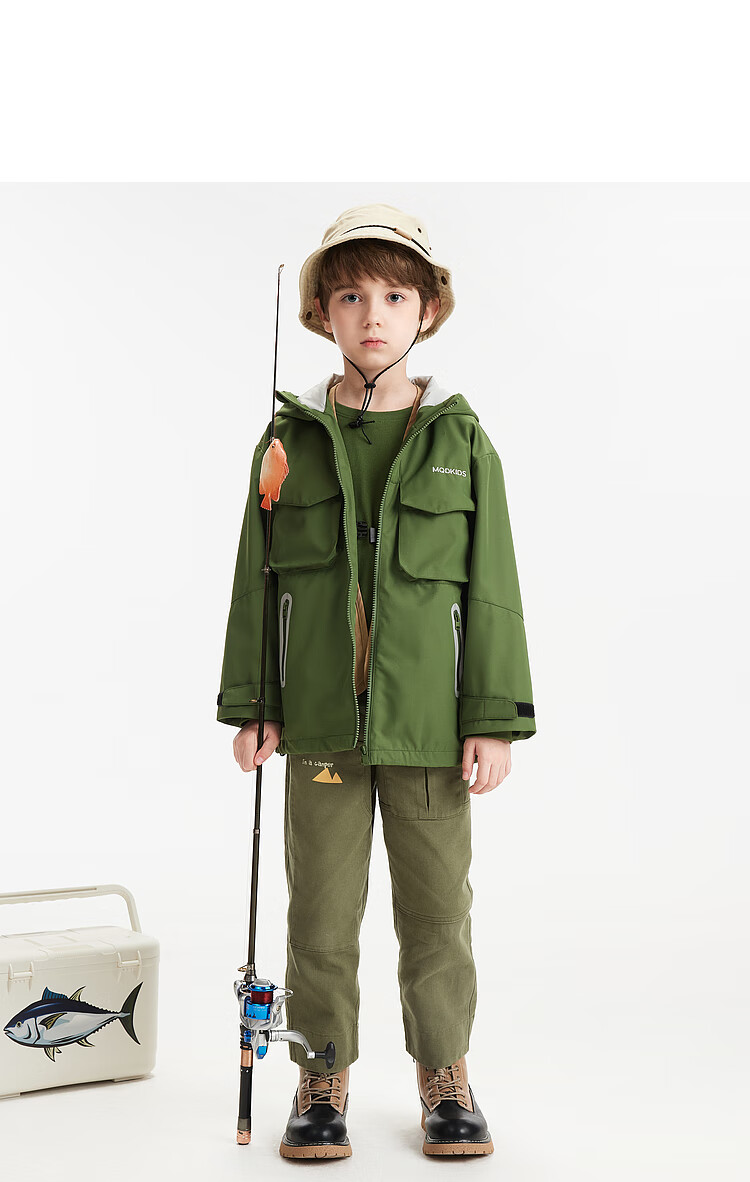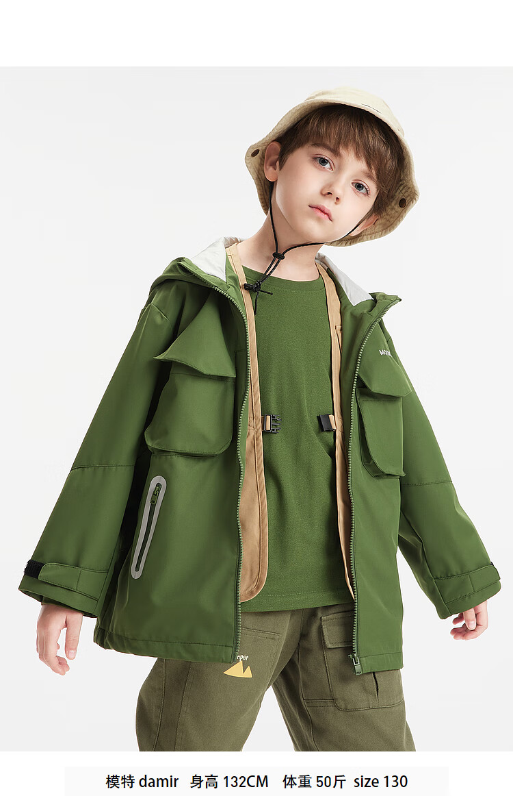 MQD童装男童中长款印花连帽风衣23字母时尚防水反光口袋上衣 绿花版 170 (3XL)