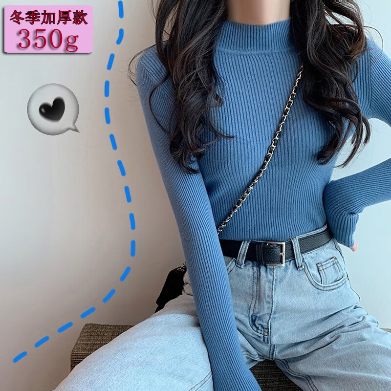 虎迹2025冬季半高领女士打底衫《杭州直播款》 蓝色-秋冬厚 均码