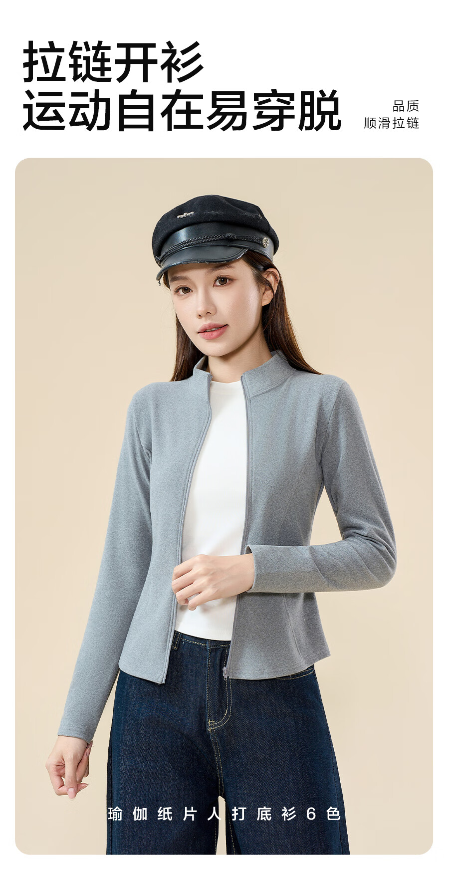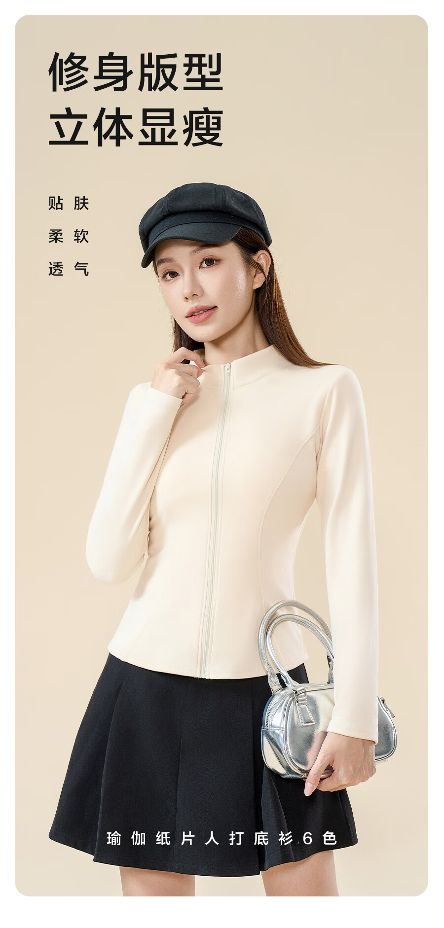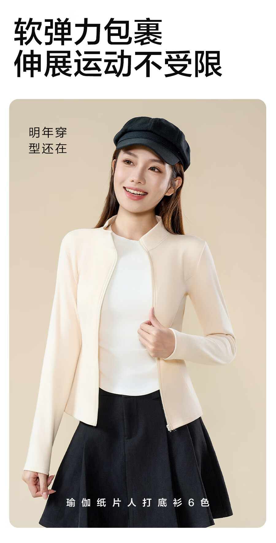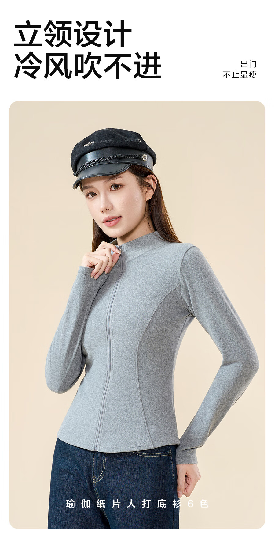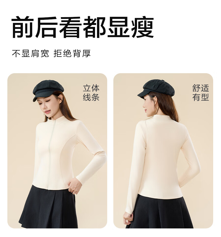 相伊恋人拉链打底衫女可外穿25年秋冬季新款修身长袖t恤保暖户外内搭上衣 米杏色【美学分割 即穿即瘦】 L 【建议体重105-125斤】