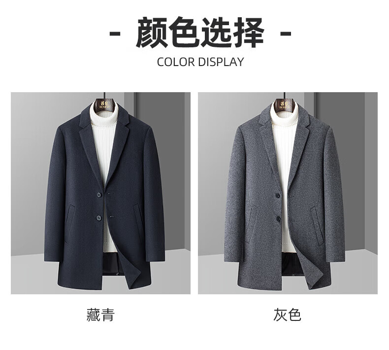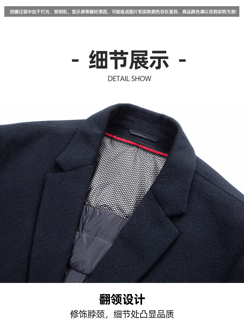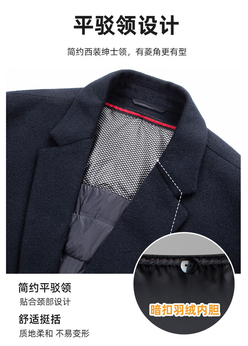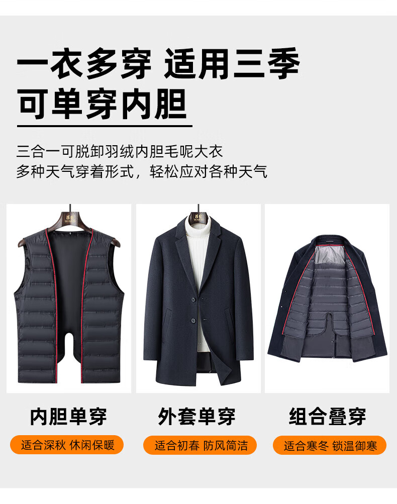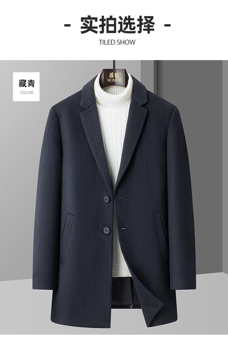 罗蒙(ROMON)【绵羊毛可脱卸羽绒内胆】商场同款毛呢大衣男中长款加厚保暖外套 灰色 L (175)