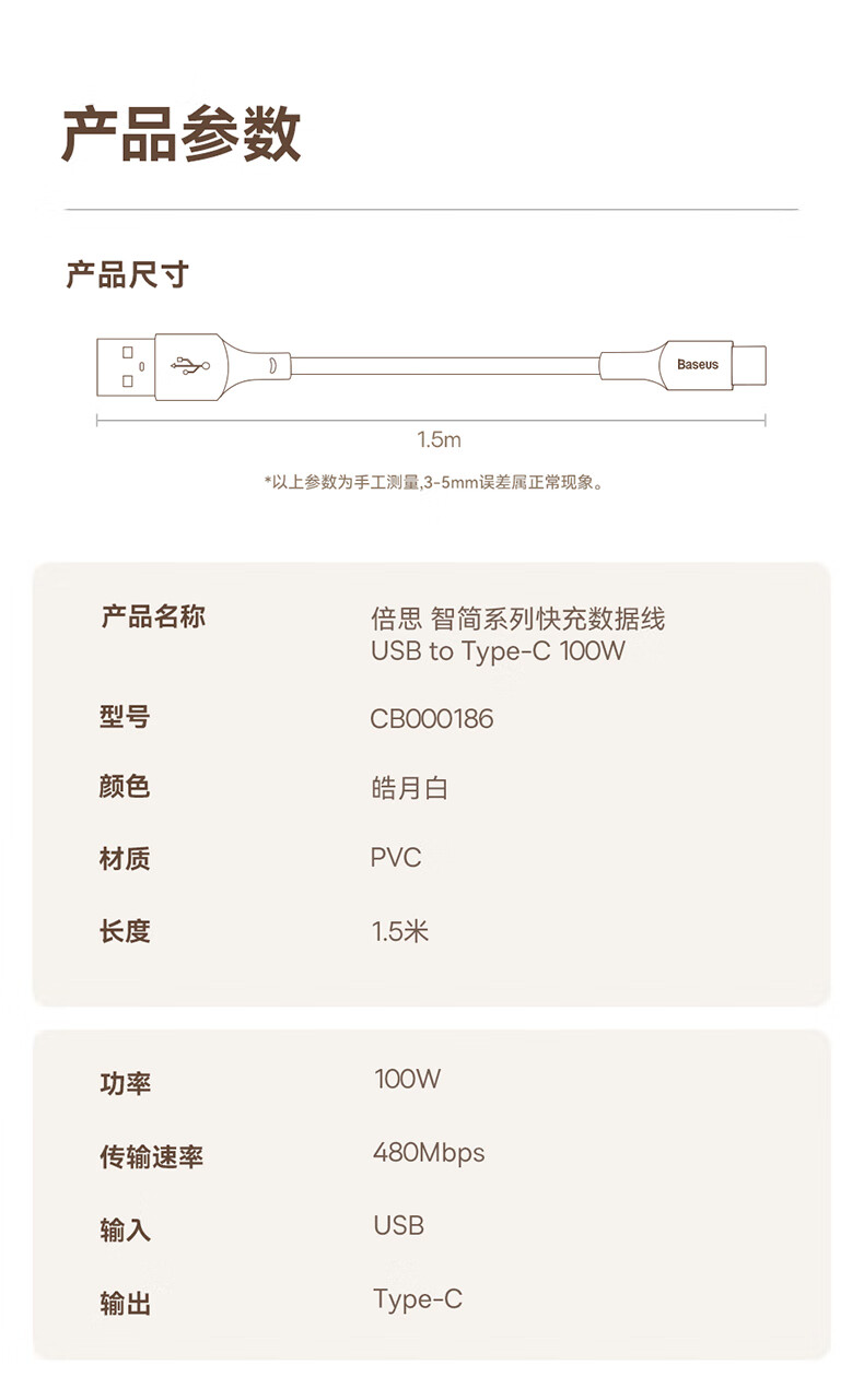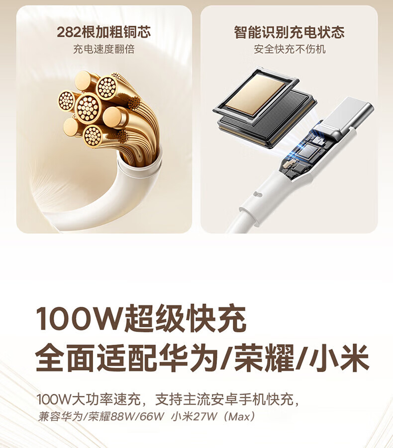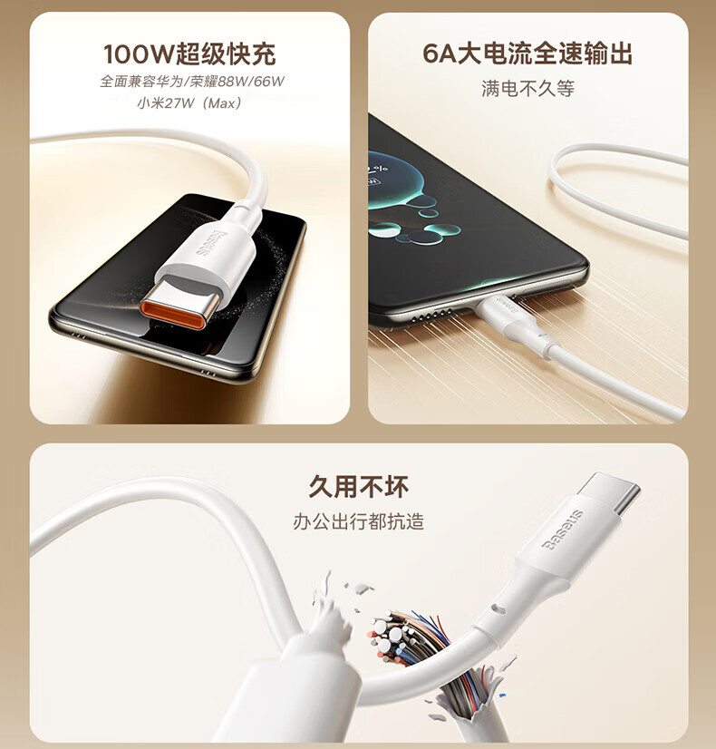 倍思Type-c数据线6A超级快充100W/88W/66W/40W华为荣耀充电线适用小米安卓手机平板Pura80/Mate70/60