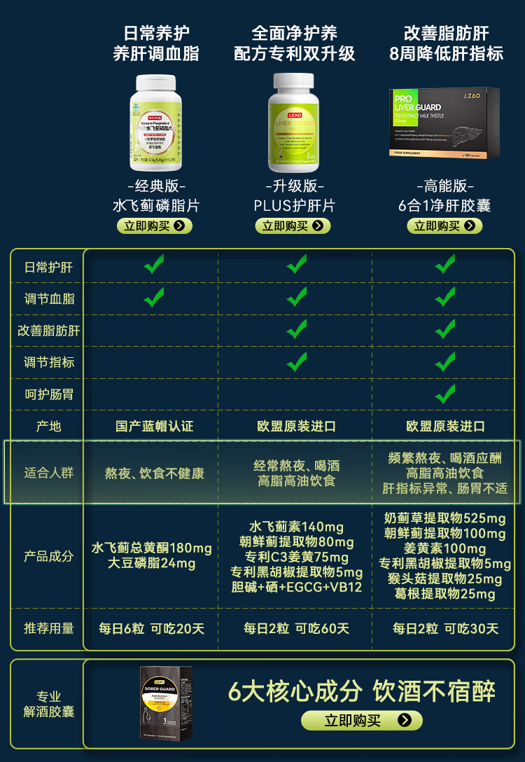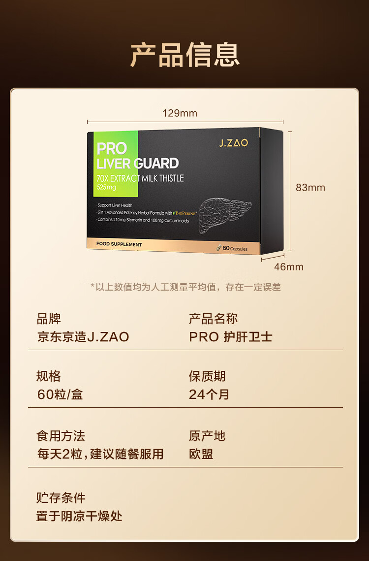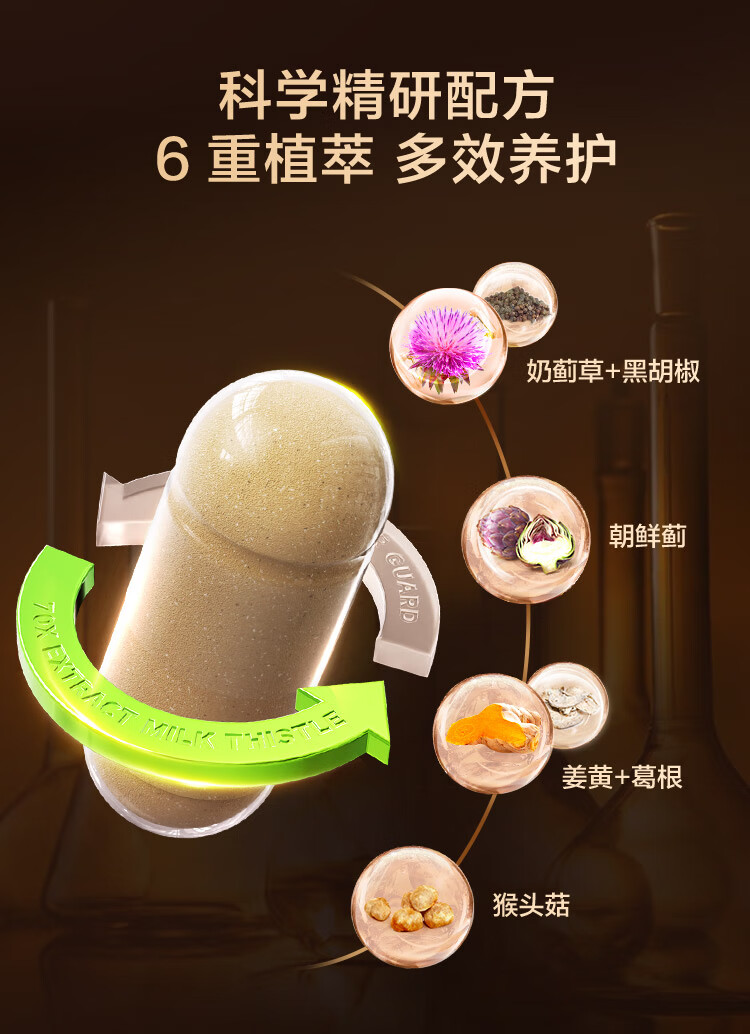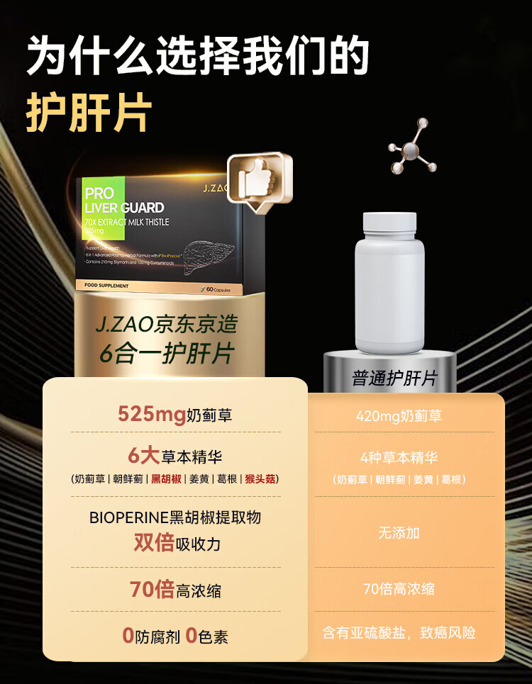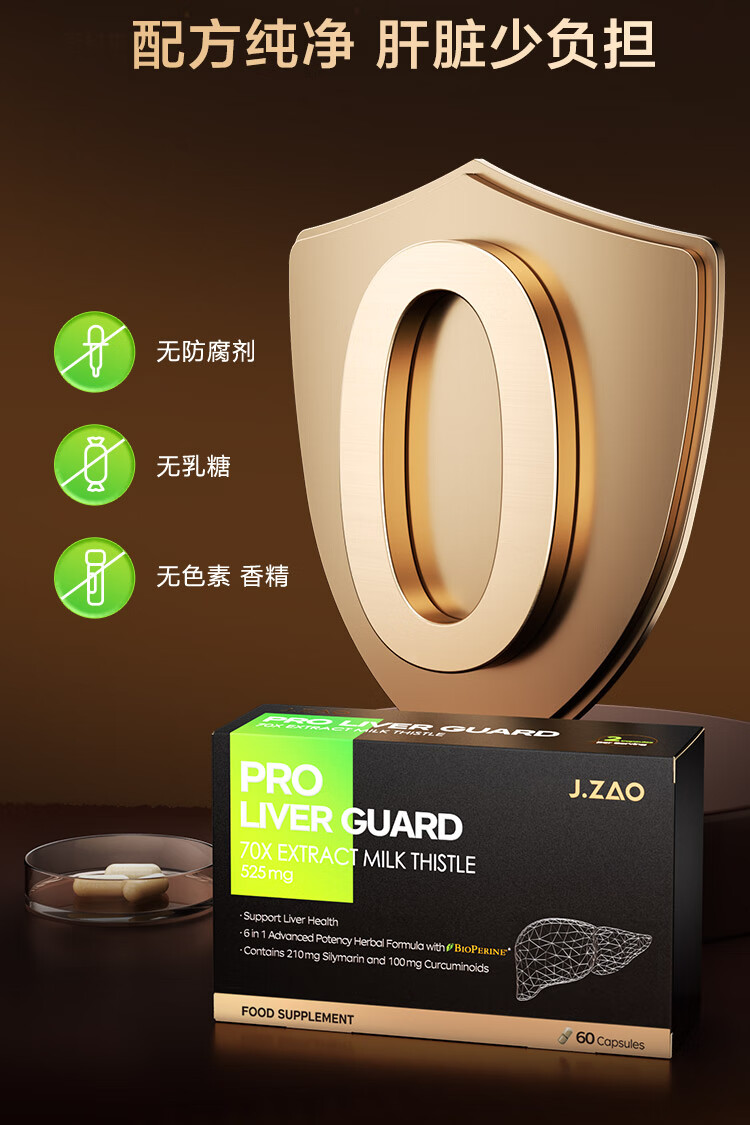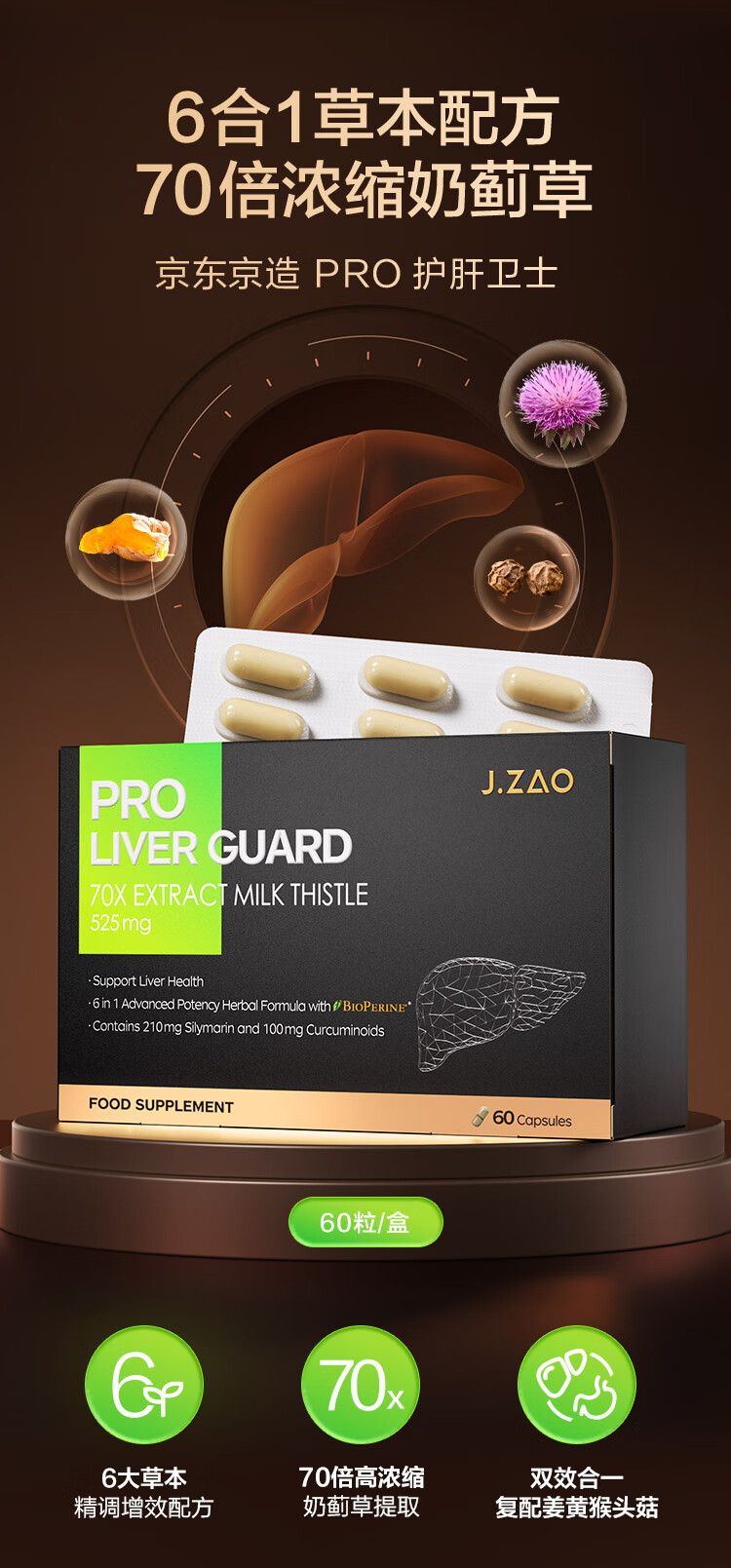 J.ZAO京东京造6合1净肝护肝片 水飞蓟奶蓟草姜黄素脂肪肝解酒60粒