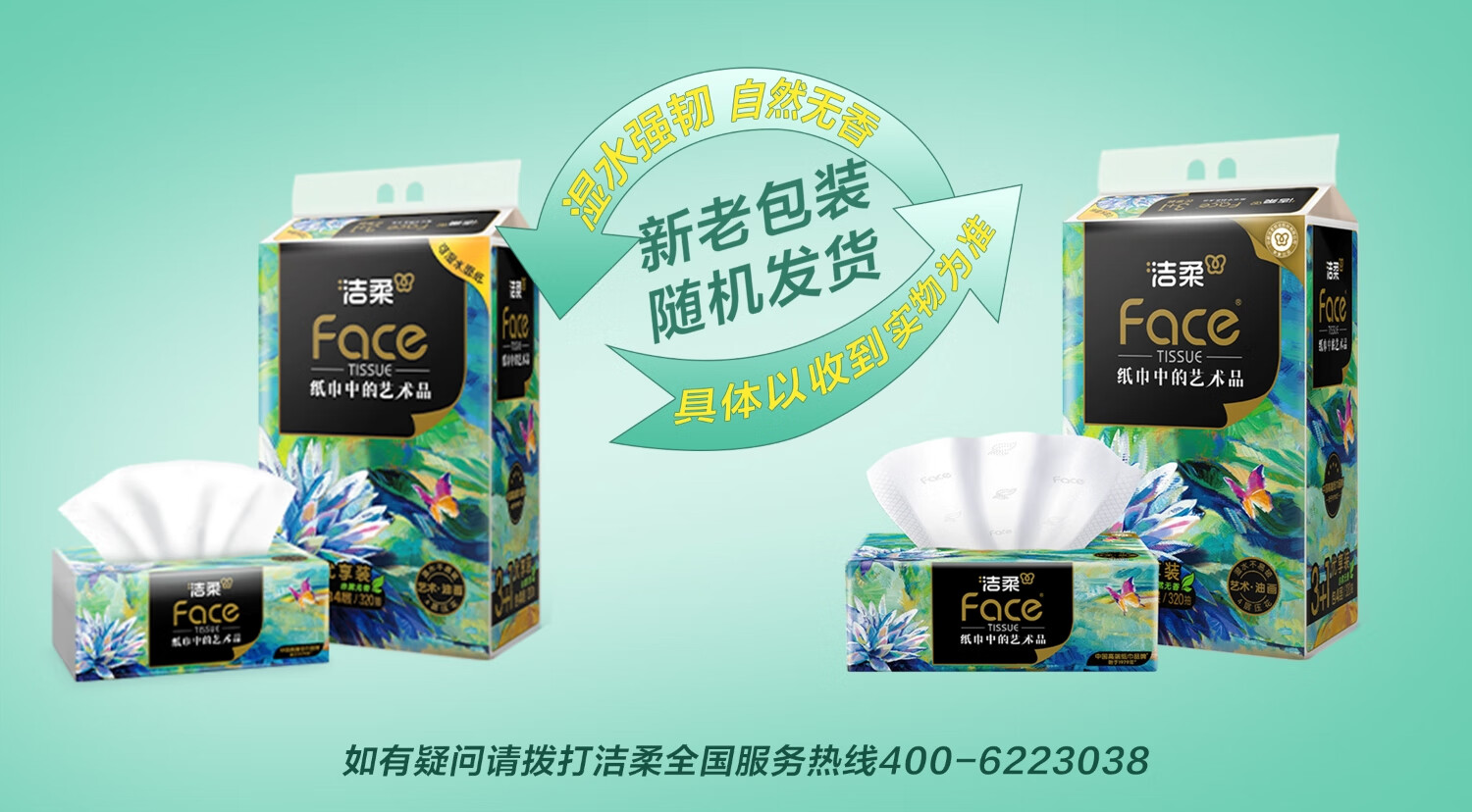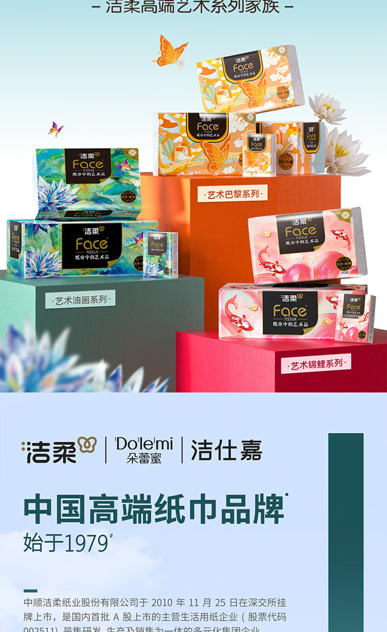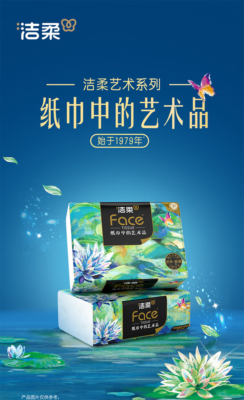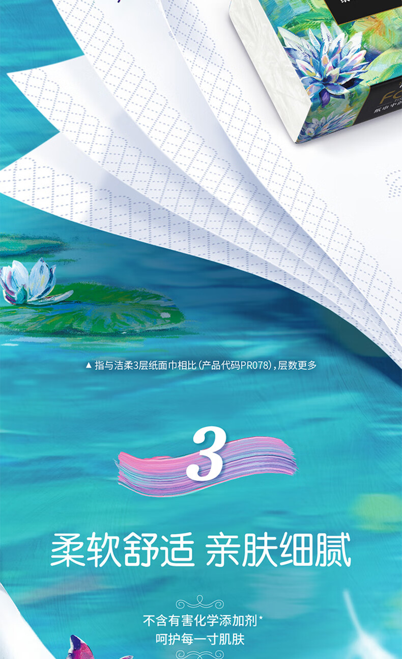 洁柔抽纸 艺术油画Face加厚4层80抽*4包 校园必备 高端面巾纸