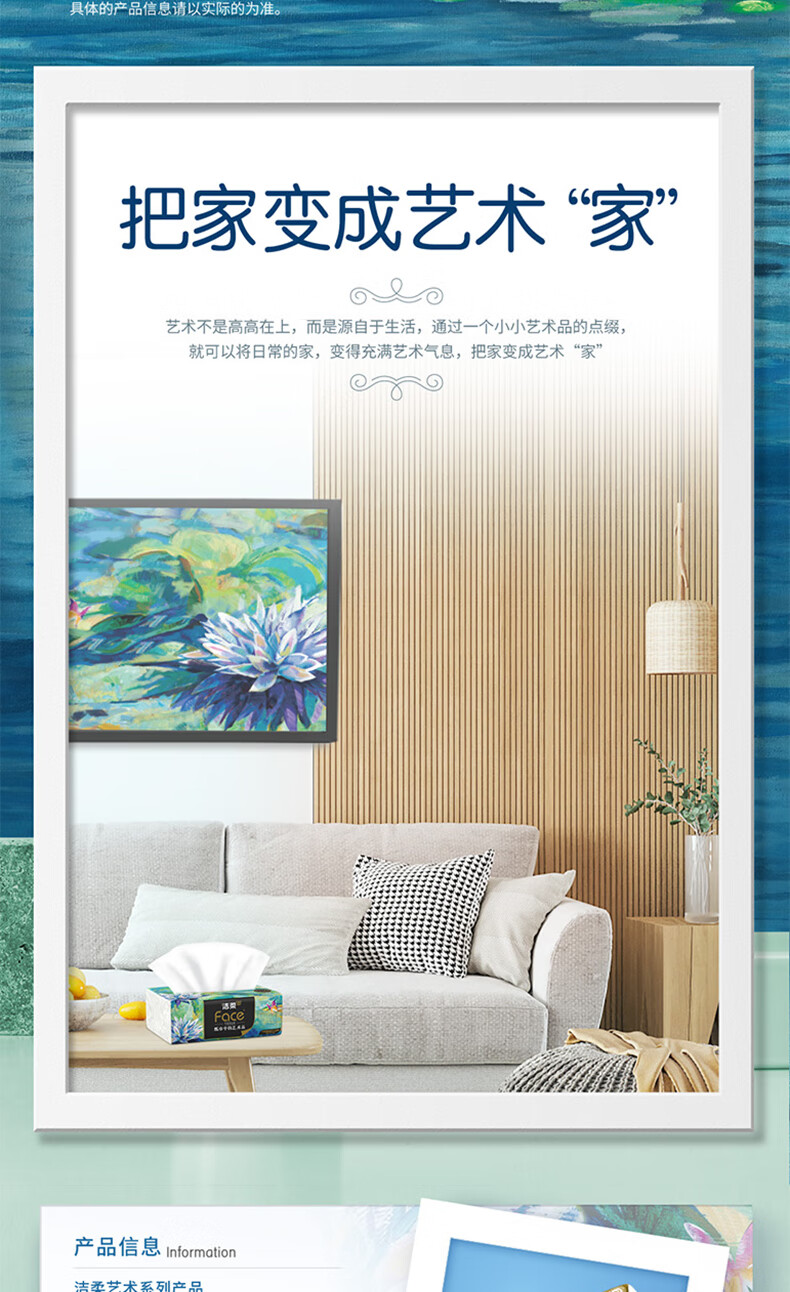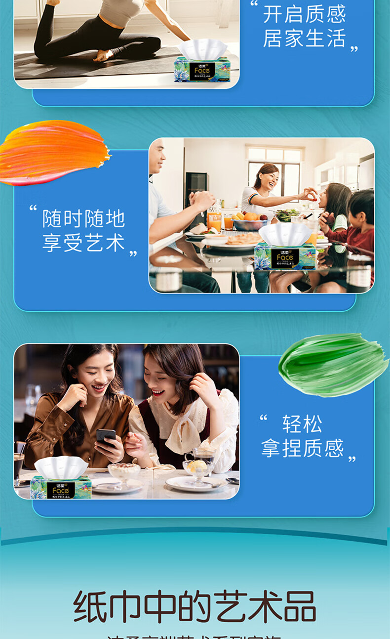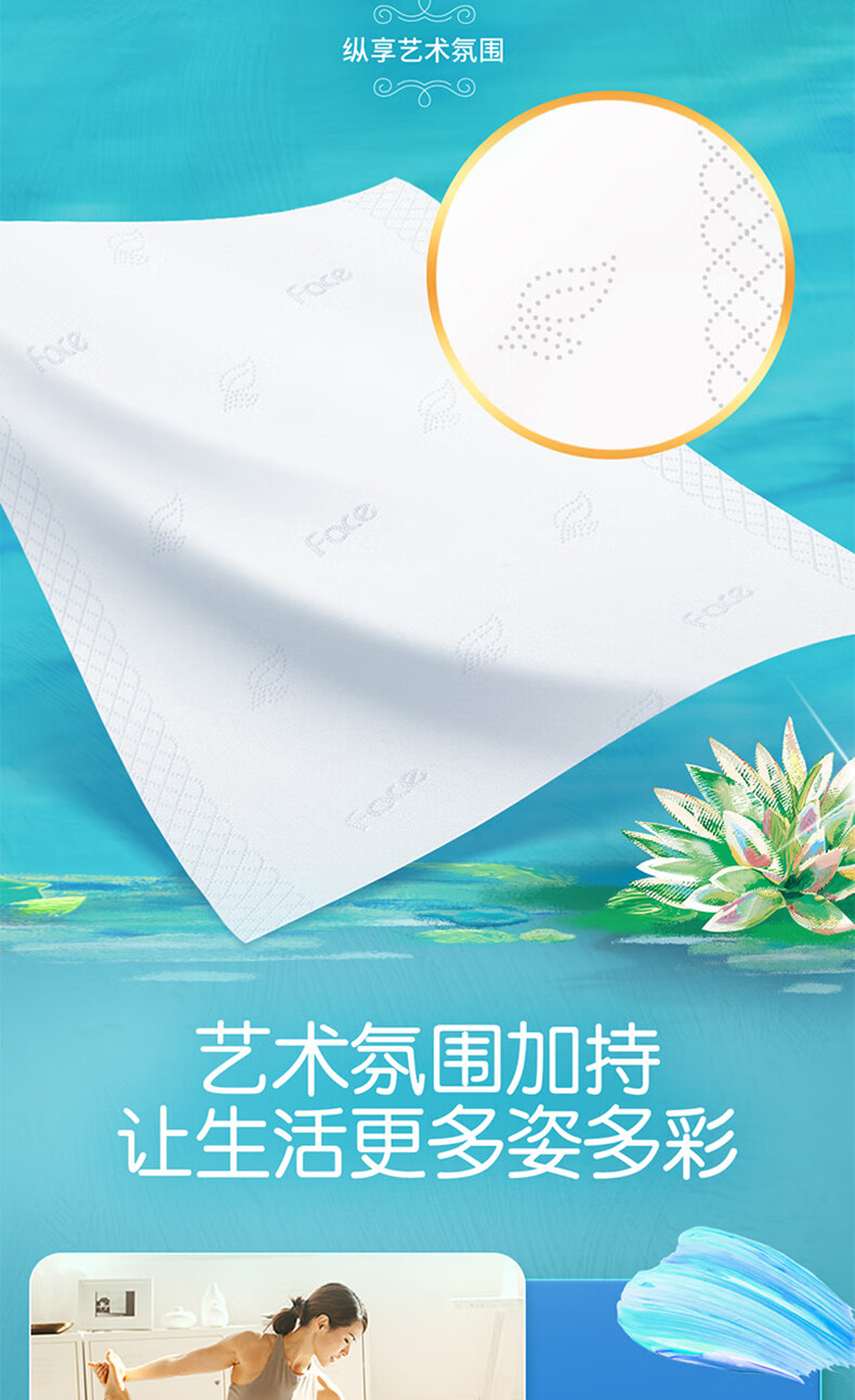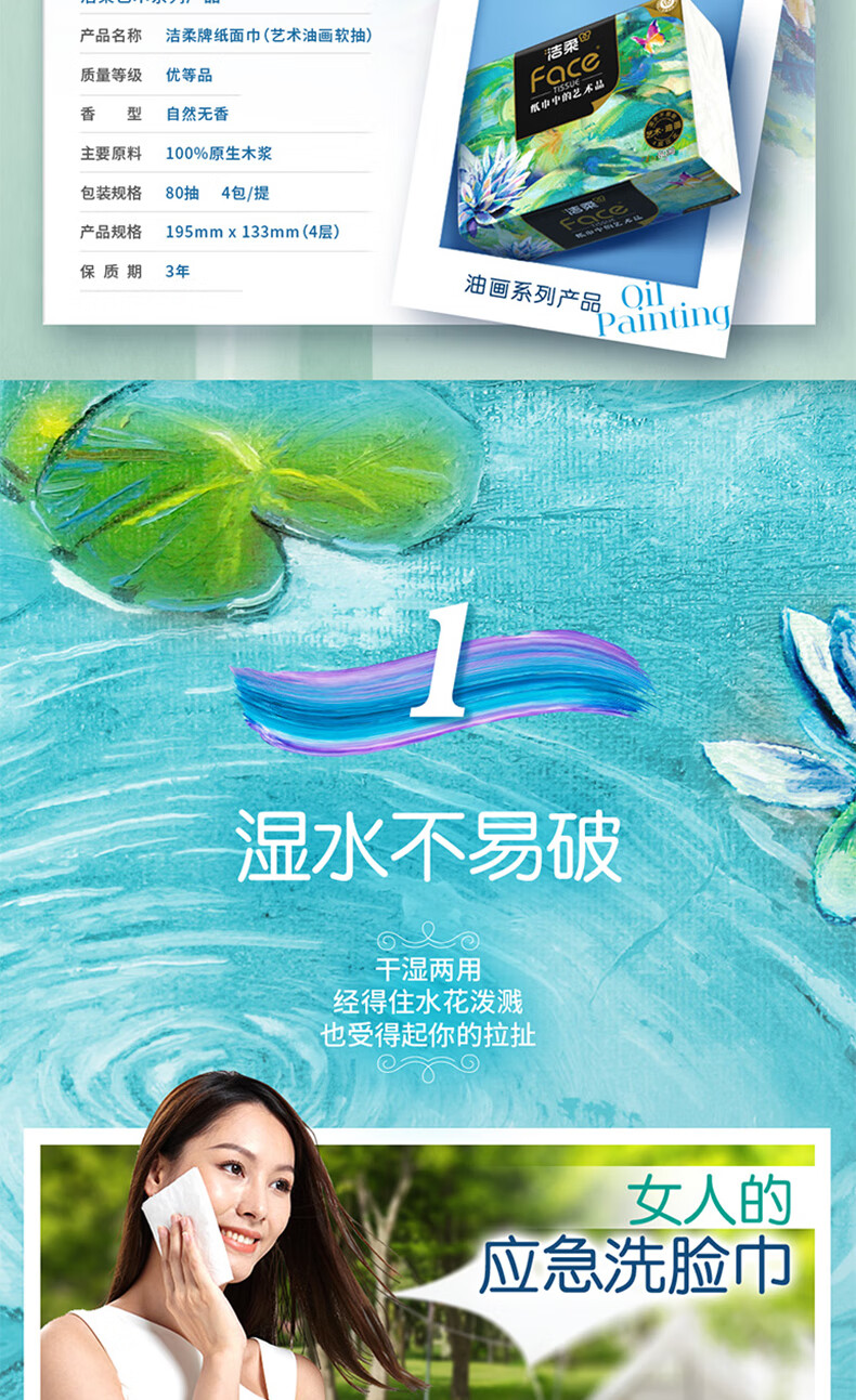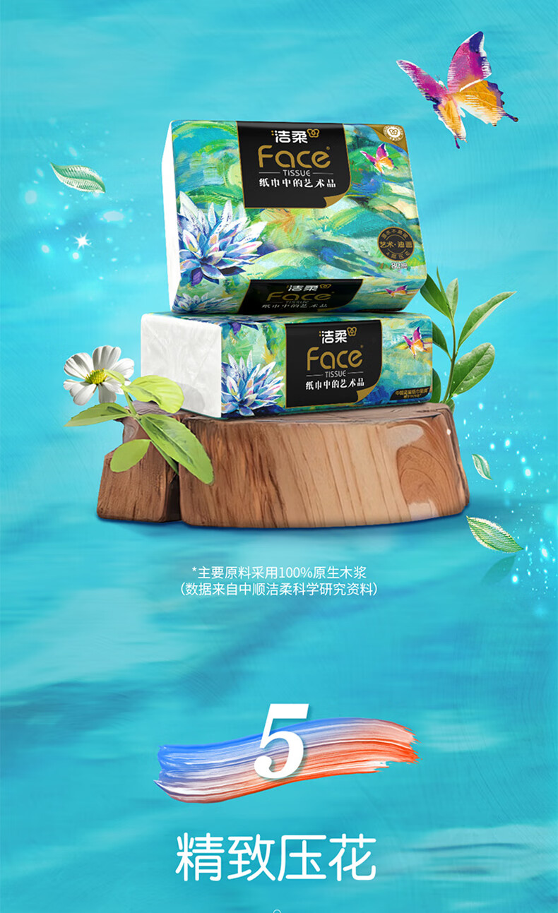 洁柔抽纸 艺术油画Face加厚4层80抽*4包 校园必备 高端面巾纸