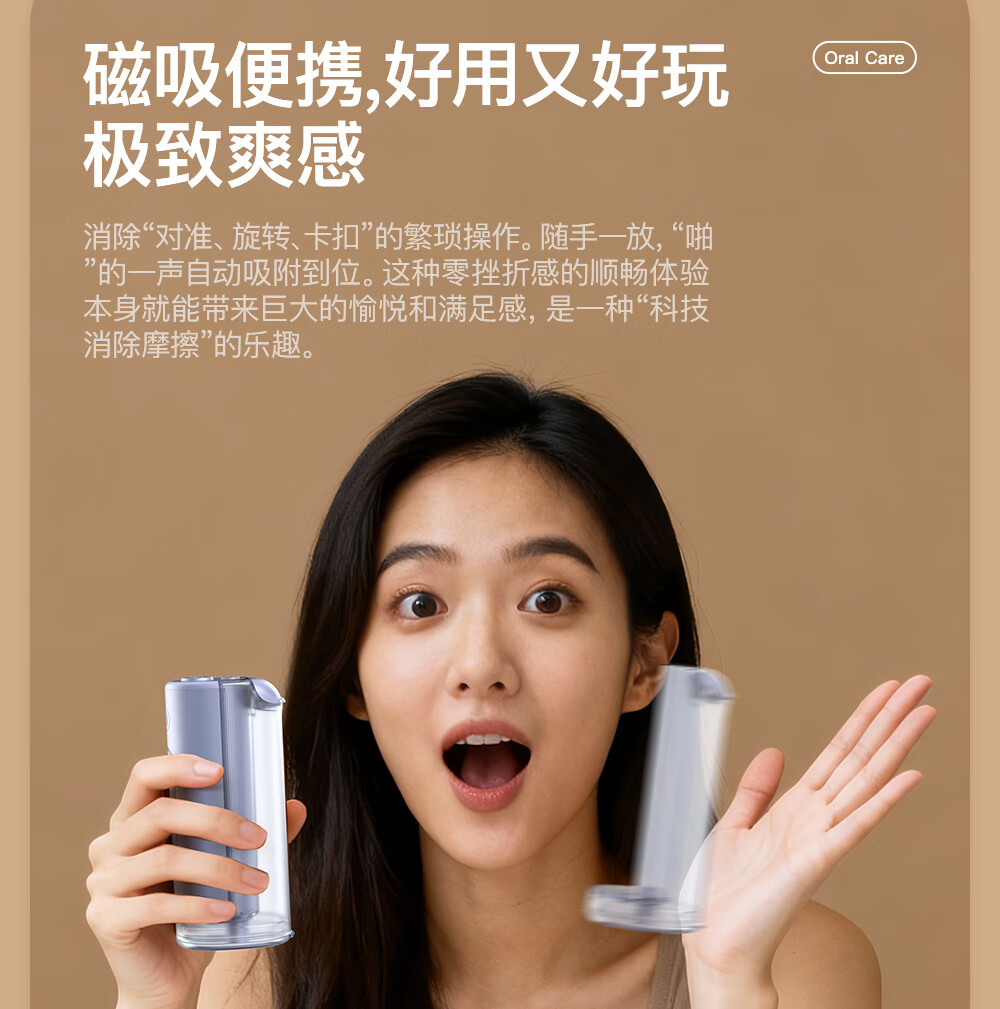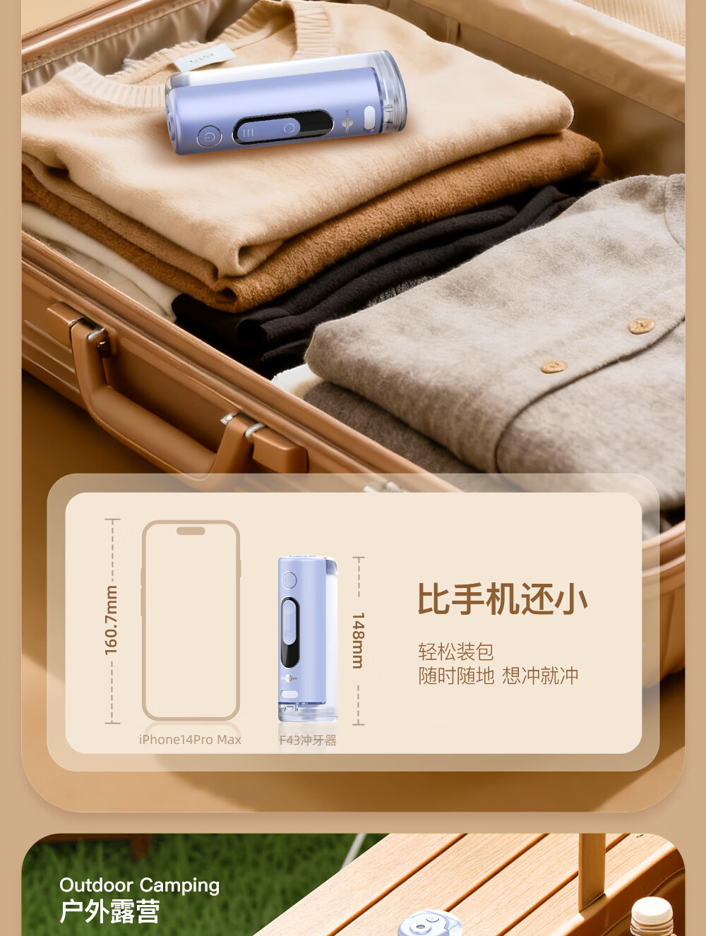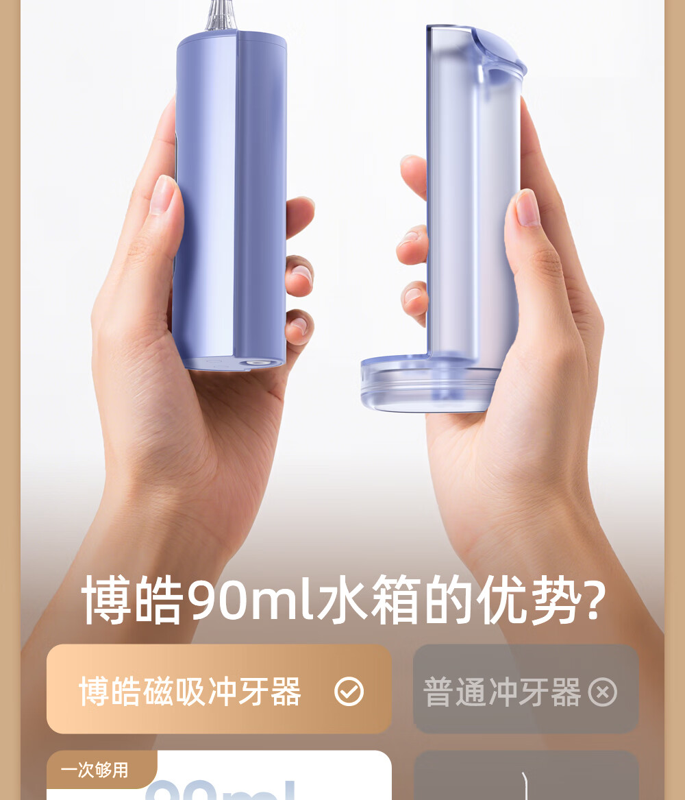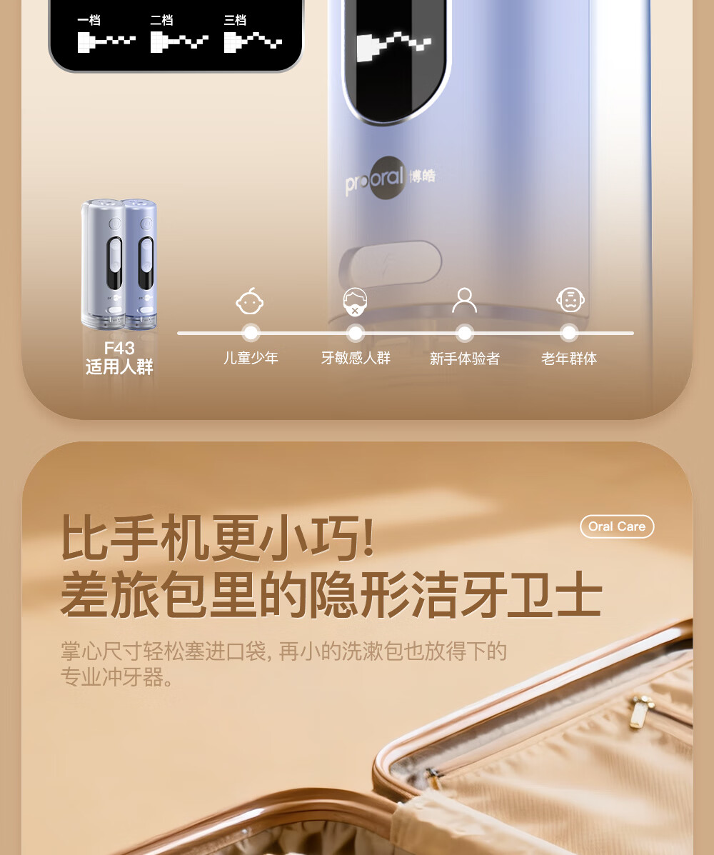 博皓(prooral)便携式冲牙器/洗牙器/水牙线/洁牙器F43磁吸水箱雾蓝