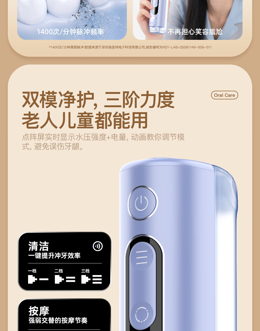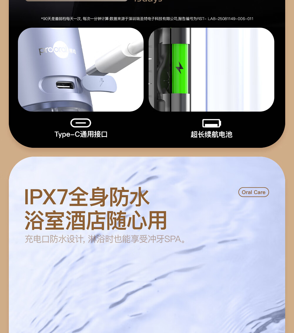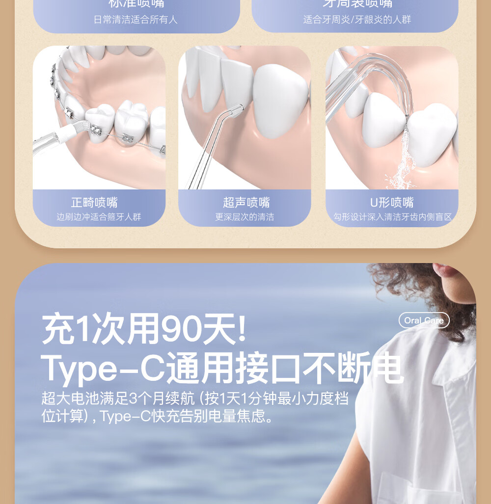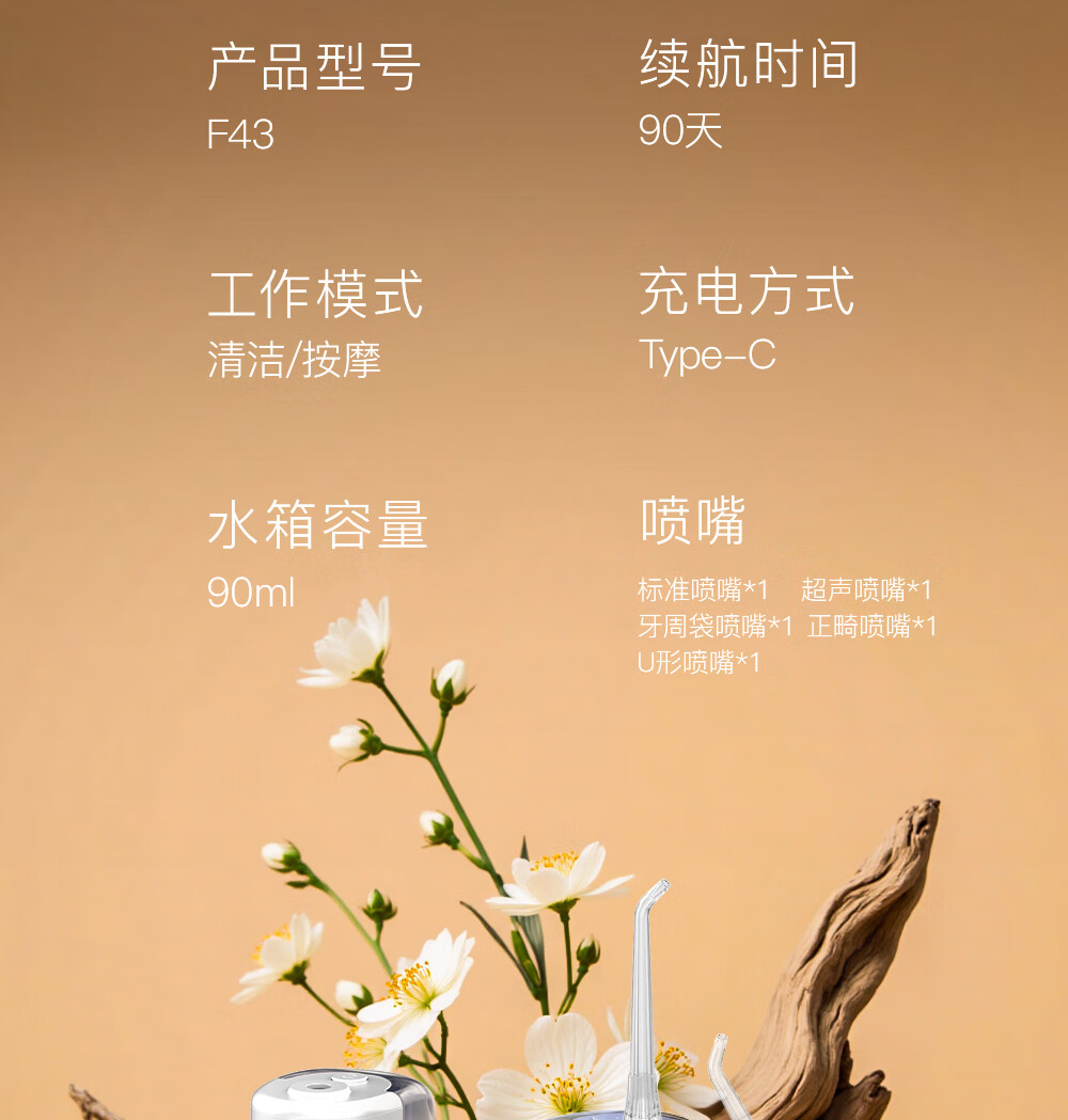 博皓(prooral)便携式冲牙器/洗牙器/水牙线/洁牙器F43磁吸水箱雾蓝