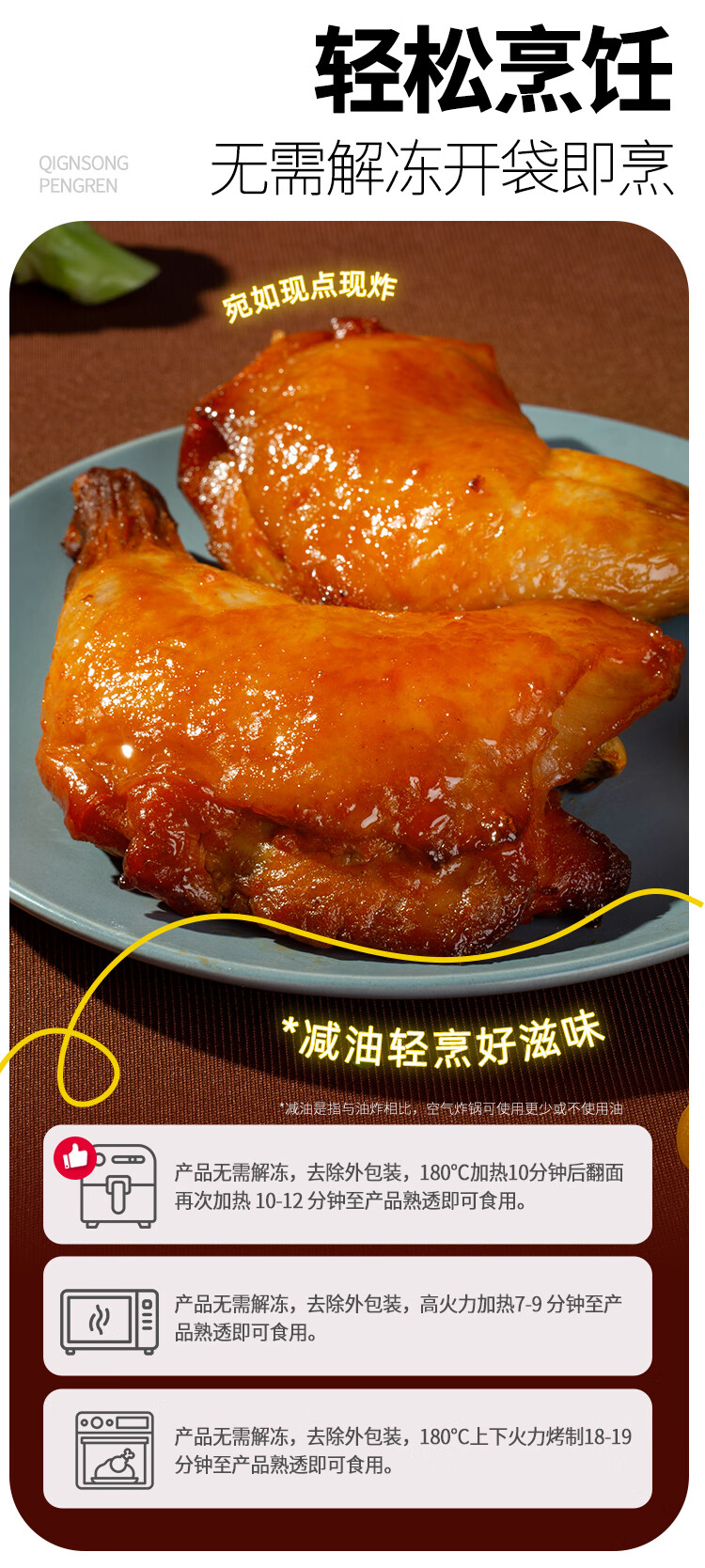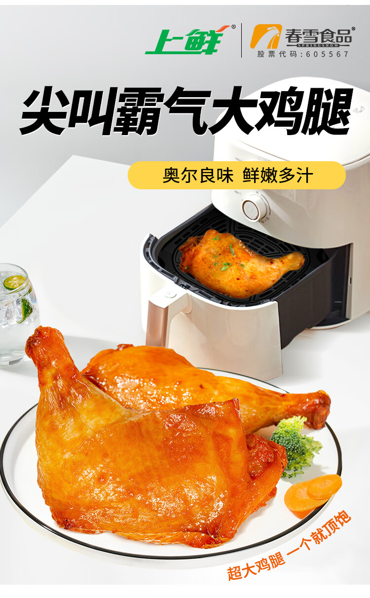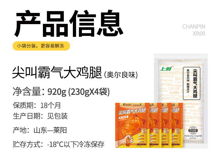 上鲜 尖叫霸气大鸡腿(奥尔良味)230g*4袋 麦肯烤全腿空气炸锅食材